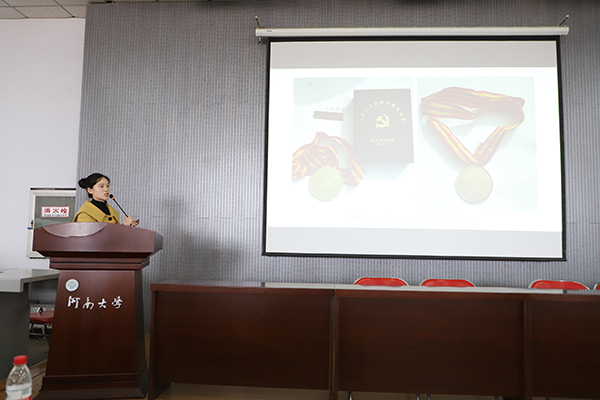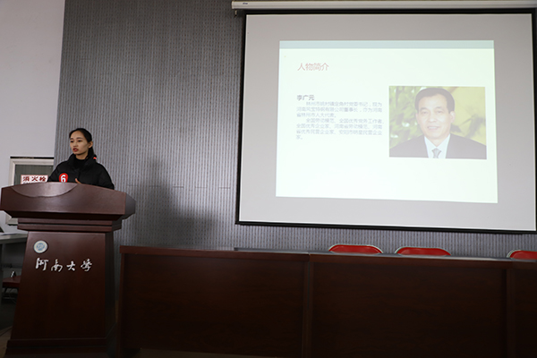 3月8日中午,英国365集团官网“榜样的力量”榜样宣讲决赛在公司405教室进行,英国365集团官网党委副书记胡春贞,英国365集团官网党委负责人、2018级辅导员靳利粉,2015级辅导员李广胜,研科办负责人、2017级辅导员刘金石,团委负责人陈春兆担任决赛评委老师,英国365集团官网全体员工党员、积极分子和2018级员工前来观赛。决赛由2015级美术学专业员工邓昱主持。