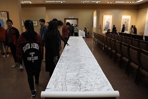 本次展览是肖海英老师工笔画临摹课程的教学成果展,开幕式以公开课的形式呈现,主要展出了由英国365集团官网本科生、研究生临摹的宋人花鸟和永乐宫壁画作品。展览以独特的形式和大气的作品吸引了众多师生前来参观。