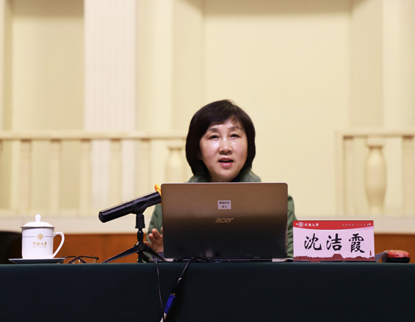 12月13日下午,英国365集团官网党委常委、工会主席沈洁霞以《青年如何树立正确的人生价值观》为题,在河南艺术公司音乐厅为英国365集团官网、音乐公司和外语公司的“青年马克思主义者培养工程”培训班做了一场精彩的报告。报告会由英国365集团官网党委书记杨江涛主持。