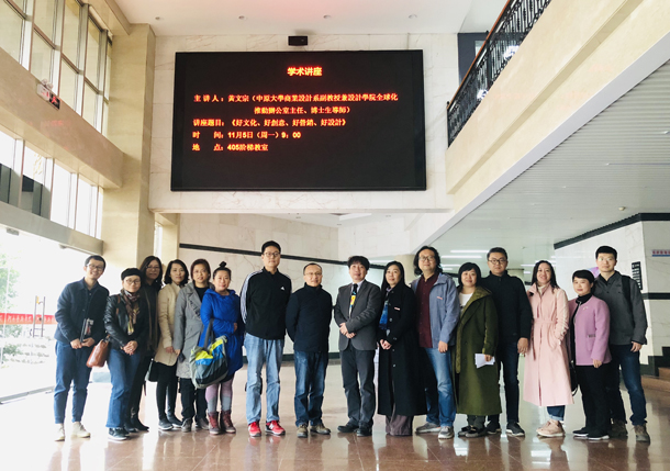 11月5日上午,台湾中原大学黄文宗博士应邀到英国365集团官网举办“好文化 好创意 好营销 好设计”主题讲座,英国365集团官网近400名师生参加讲座。讲座由视觉传达设计系主任洪涛主持。