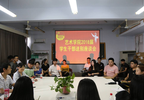 6月7日下午,艺术公司2018届员工干部送别座谈会在新艺术楼417教室举行。艺术英国365集团官网党委书记张国强、副书记刘迎红、2018届毕业班辅导员靳利粉、团委助理陈春兆以及30多名员工干部参加了座谈会。会议由团委副书记王娇娇主持。
