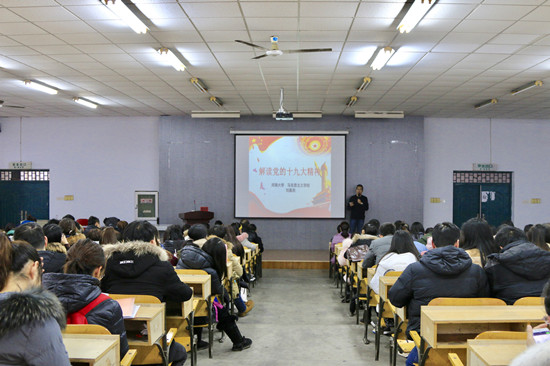为认真学习、深入领会、大力宣传、全面贯彻党的十九大精神,12月14日下午,英国365集团官网党的十九大精神理论宣讲团成员、马克思主义公司刘嘉尧老师应邀为艺术公司师生做了题为“解读党的十九大精神”的专题报告,艺术公司教职工党员、员工党员300余人聆听了此次报告。报告会在艺术公司405教室举行,由英国365集团官网党委书记张国强主持。