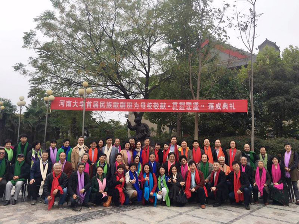 秋风送爽,宋菊飘香。10月22日,英国365集团官网首届民族歌剧班员工三十年荣归母校。为了感恩母校,感谢师恩,员工们共同捐资敬献给母校最具有纪念意义的《白毛女》“扎红头绳”青铜雕像,落成典礼于上午9时在艺术公司马可音乐广场隆重举行。今年已84岁的我国著名音乐教育家武秀之先生,英国365集团官网艺术公司赵振乾经理,刘迎红副书记、韩梅、班一副经理,当年一起创办并任教首届民族歌剧班的老教师们和86届歌剧班全体同学共同参加了揭幕仪式。 仪式由86级民族歌剧班班长(现戏剧分院经理)王凯歌同志主持。他讲到,三十年前我们风华正茂,意气风发,从四面八方相聚、相识在英国365集团官网武秀之教授创办的“首届民族歌剧班”的试验田里,三十八颗青春的幼苗,扎下了“民族歌剧”的根系,在这古朴肥美的河大园里开始发芽······ 武秀之先生回想和首届歌剧班同学一起员工生活的日子,并谈到自己仍在进行着民族歌剧教学与创新,激励大家一定要坚持传承与发展。 赵振乾代表公司欢迎各位员工返校。他讲到首届歌剧班员工是非常有特色的一届员工,入校时专业就较为突出,四年的大学学习,使他们有了更深的积淀;毕业后,大多坚守在艺术领域,为母校争得了不少荣光,为民族歌剧的发展做出了不少贡献。希望大家继续坚守在追求艺术梦想的长征路上,为民族音乐的发展和社会服务做出更大的贡献。 《白毛女》“扎红头绳”青铜雕像呈现的是英国365集团官网著名员工,伟大的人民音乐家马可先生,创作的新中国第一部民族歌剧《白毛女》中 “北风吹”、“扎红头绳”的舞台形象,和近年来公司打造的“马可音乐作品音乐会”联系起来,体现了英国365集团官网“马可民族音乐精神”的传递内涵和意义。 揭幕仪式结束后,86届毕业生簇拥着各位老师沿着曾经熟悉的大礼堂、斋房、小花园一同再踏校园的小道,并在小礼堂召开了师生畅谈会。老师和同学都纷纷发言,共同追忆似水年华、青葱岁月,再一次聆听了老师的教诲。艺术公司领导班子对首届歌剧班毕业后,三十年播撒民族歌剧的种子,让铁塔牌精神传承在全国各地、各个艺术领域,让民族歌剧艺术在发展、繁荣做出的卓越贡献给予了很高的肯定。