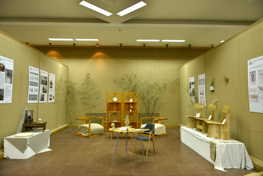 此次展览的所有作品都是在刘阳副教授指导下,由艺术公司2013级环境艺术设计专业的同学们亲自设计并制作的。从理论指导到实际考察,从方案修改到家具制作,刘阳对员工进行了全面细心的指导。展览共展出20多组的31余件作品。作品的风格迥异,有原木风、工业风、异域风、小资情调风等;作品的材料独特,钢筋、毛毡、麻布、水洗纸、软木、竹子、金属等,各种材料在员工们的创意下运用自如。作品的设计新颖,几何切面、黄金分割、蒲扇、流线等,各种线条和造型充满设计者的灵感。