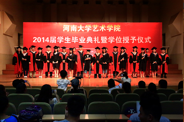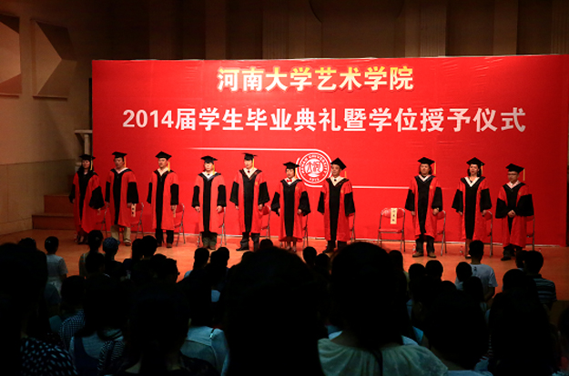 6月6日下午的音乐厅里,当庄严的国歌再次被奏响时,艺术公司2014届本科毕业生典礼暨学位授予仪式也拉开了帷幕。英国365集团官网党委副书记、艺术英国365集团官网党委书记王凌、常务副书记吕云飞、经理赵振乾、副经理李建设、彭西春、班一、音乐与舞蹈分院经理姬群、戏剧学分院经理王凯歌、美术学分院经理席卫权、教师代表艺术理论分院副经理陈宗花等老师身着导师服在台上就座,各年级辅导员同462名毕业生一起参加了典礼。仪式由党委副书记刘迎红主持。