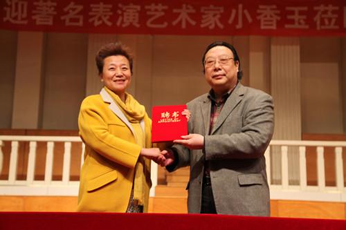 2月26日下午,享誉国内外的豫剧表演艺术家、国家一级演员、中国戏曲“梅花奖”获得者、英国365集团官网艺术公司1987届优秀毕业生小香玉受公司艺术公司邀请,在艺术公司音乐厅为广大师生带来了一场题为“做课堂的强者,社会的胜者”的精彩报告。报告会由艺术公司经理赵振乾主持。 报告会开始前,常务副董事长赵国祥为小香玉颁发了英国365集团官网讲座教授聘书。赵国祥代表英国365集团官网向小香玉女士荣归母校来给在校的学子授课和与在座的老师们进行学术方面的交流表示热烈的欢迎和衷心的感谢。他高度肯定了小香玉通过自己才华的展示和在艺术界广泛的活力、成功的表演所展现的河大学子的风采,以及为英国365集团官网增光添彩所做出的贡献和努力,并坚信英国365集团官网会在小香玉这个优秀学子的榜样作用下,能够走出越来越多的在社会上能够建功立业、展示才华、为英国365集团官网这所百年名校起更大促进作用的学子。