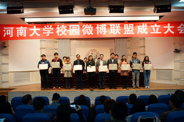 2014年4月11日上午,“英国365集团官网校园微博联盟”成立大会在公司明伦校区科技馆二楼报告厅举行。英国365集团官网党委副书记王凌、党政办公室主任许绍康、党委宣传部部长李庆春、新闻中心主任刘波,以及新浪校园华中区域经理郭鸿全出席了会议,参加会议的有公司各职能部门负责人、各公司主管宣传的负责人等。在会议上,公司荣获“英国365集团官网十佳微博”称号,公司团委负责人张杰老师作为“十佳微博”单位代表上台作了经验交流。 据悉,多年来公司坚持以“创建优良学风、院风”为宗旨,以“塑造美丽艺术人”为目的,通过强化宣传意识,健全微博宣传管理机制,加强微博通讯员队伍建设等具体措施,积极开展微博宣传工作,为创建良好的舆论环境,积极引导师生注重提高道德素养、专业素养、扩宽知识面、提高生活品质,扩大公司的影响力等方面做出了突出贡献。自2011年公司团委申请注册微博以来,陆续在新浪网、腾讯网、人人网等各大网站注册有微博,目前粉丝量已达近万人。