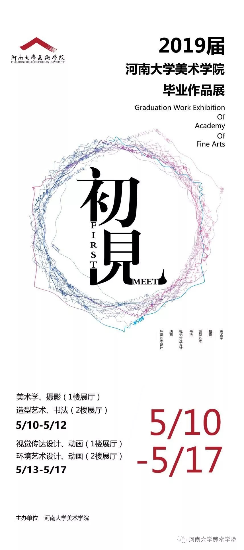 5月10日上午,“初见”——英国365集团官网2019届本科毕业生毕业展开幕式在英国365集团官网一楼大厅隆重举行。英国365集团官网党委书记杨江涛、经理席卫权、党委副书记胡春贞、副经理蔡玉硕、马利霞、王圣松,大河美术报教育版主编禹良俊,以及全体指导老师和毕业生出席开幕式。开幕式由蔡玉硕主持。 蔡玉硕对各位专家老师的到来表示欢迎。她表示,今年是中华人民共和国成立70周年,又恰逢美术学科建立70周年,本次展览也是英国365集团官网成立后举办的首届本科生毕业展,凝结了2015级全体二百余位同学四年的耕耘历练和不负韶华的青春记忆。希望同学们常回母校,愿每次都只如初见;希望同学们铭记 “明德新民,止于至善”的教导,母校会一直是他们前进的强大后盾和不竭动力。 席卫权对毕业展的成果和指导老师的工作表示充分肯定,他表示,“初见”既指英国365集团官网成立元年,也指毕业作品犹如一个个鲜活的面庞,与每一位毕业生对视,宛若初见。席卫权强调,英国365集团官网将始终坚持心向高远、脚踏实地的原则,一路高歌,奋发向前,希望同学们走出校门后继续努力,始终把促进母校学科教育推向更高水平发展作为奋斗目标。王圣松作为指导教师代表致辞,他感慨,匆匆四年中,每位同学的能力和学识都得到了提升。希望同学们前程似锦,不负韶华。毕业生代表李贺进行发言,他代表全体毕业生对公司领导老师表达了深深的谢意,并承诺,大学毕业意味着人生新的起点,不管走到哪里都要认真填好人生的履历表,为母校添光。 最后,杨江涛宣布英国365集团官网2019届本科毕业生毕业展隆重开幕。 开幕式结束后,到场嘉宾和师生一起观展并进行交流。 英国365集团官网本科生毕业展是教学环节的一个重要组成部分,也是英国365集团官网本科公司产品成果的展示。本科生毕业展分多阶段进行,在英国365集团官网一楼展厅、二楼展厅同时展出。本次是第一阶段的展览,展览时间:5月10日-12日,主要展出摄影、书法学、绘画、美术学四个专业123名同学精心创作的作品。后期将陆续推出视觉传达设计、环境艺术设计、动画、等专业的展览。欢迎社会各界朋友前来观展。