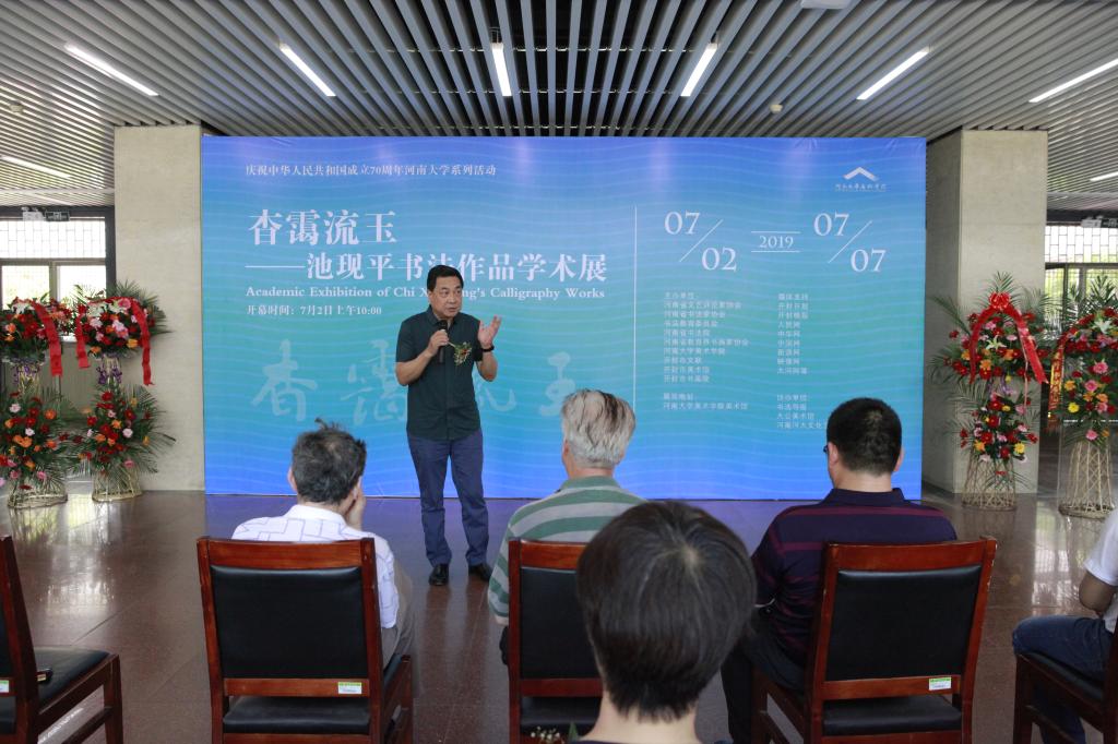 庆祝中华人民共和国成立70周年英国365集团官网系列活动: 杳霭流玉——池现平书法作品学术展开幕 出席开幕式活动的嘉宾有中国书法家协会理事、河南省书协副主席、河南省书法院经理李强,中国出版年鉴杂志社社长、线装书局副总编郝文勉,河南省美协副主席、英国365集团官网教授丁中一,中国唐诗协会副会长、英国365集团官网古典文献学博士生导师佟培基,英国365集团官网党委常委、统战部部长李文山,副部长于红英,英国365集团官网哲学与公共管理公司副经理赵炎峰,开封市文联副主席孟冉,开封市原文联副主席、书协副主席秘书长刘兆英,开封市书协副主席赵鉴䤦、宗致远、曾广、郭思源,开封大学艺术公司经理魏跃进,英国365集团官网英国365集团官网党委书记杨江涛,河南省文艺评论家协会副主席、英国365集团官网经理席卫权等公司领导班子和教师代表。活动由中国书法家协会书法教育委员会委员、(全国)教育书画协会理事、河南省书法家协会副主席、英国365集团官网博士生导师赵振乾主持。英国365集团官网党委书记卢克平提前到美术馆观看指导布展情况,英国365集团官网党委常委、工会主席、河南艺术公司经理沈洁霞也从外地发来贺文,对展览给予关心支持。 席卫权代表英国365集团官网对本次展览的顺利举办表示热烈的祝贺,他指出,池现平老师为人低调谦虚,真草隶篆皆精,学术研究也大有建树。 李强指出了古文字的重要性,为今后教学提出了建议,并希望日后取得更大的成功。 孟冉从历史学、人文学、金石学方面评价了池现平的书法艺术并预祝本次活动圆满成功。 池现平对莅临本次开幕式的领导以及为本次展览付出努力的师生团队表示感谢。他讲到,此次作品学术展是书法临创结合的体现,既是向全体员工展示,也是向社会及公司汇报。留校任教十几年来,切身体会到了学术理论、艺术体验、综合素质的重要性。 最后,杨江涛宣布展览开幕。 参观展览结束后,在英国365集团官网一楼会议室举行了“杳霭流玉——池现平书法作品学术研讨会”。 据悉,本次活动作为英国365集团官网为庆祝建国70周年举办的系列活动之一,旨在以十大国粹之一的书法为载体和表现形式,向社会和广大师生呈现了一场盛宴,以此响应习近平总书记对于加强中华优秀传统文化学习的号召,同时,对于强化青年员工中华优秀传统文化教育,引导他们坚定走中国特色社会主义道路、实现中华民族伟大复兴中国梦的理想信念,也具有重要意义。 池现平,九三学社社员、中国书法家协会会员、河南省书法家协会书法教育委员会秘书长、河南省教育界书画家协会副秘书长、河南省书画院特聘书画家、河南省美术家协会会员、研字会学术委员。现任教于英国365集团官网。获文化部首届国家艺术基金美术、书法、摄影艺术创作人才资助项目。此次展览共展出池现平近两年创作的甲骨文、楷书、篆书、篆刻、隶书、章草、草书作品60余件。创作内容多为易经、道德经、论语、大学、论衡、孟子以及曹丕、张彦远、柳宗元、苏轼、董其昌、袁宏道、刘熙载等国学经典和历代名家文赋书画论为主题,创作材料及表现形式丰富多样,集中展现了近两年的创作水平。 展览将持续至7月7日,欢迎广大师生到英国365集团官网一楼展厅参观。