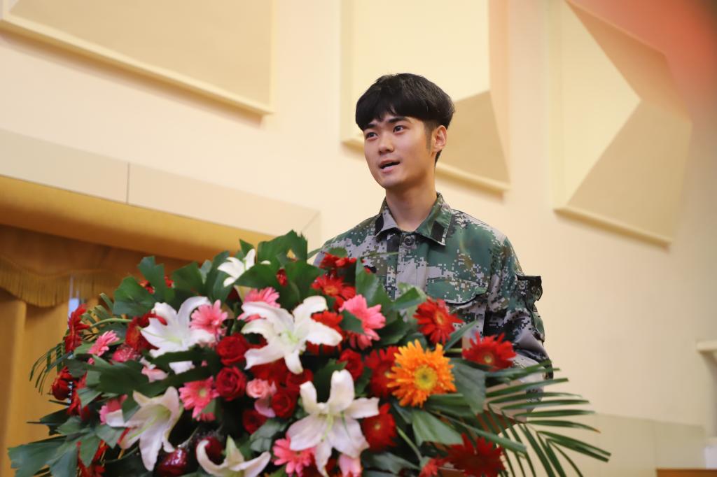 2018级绘画专业研究生黄琰, 2019级设计学专业本科生王家旭分别代表在校生和新生发言。分享大学学习和生活的经验,表示会脚踏实地,认真学习,坚守梦想,勇敢前行,用智慧和勇气去迎接一个又一个挑战,用努力创造新的辉煌。