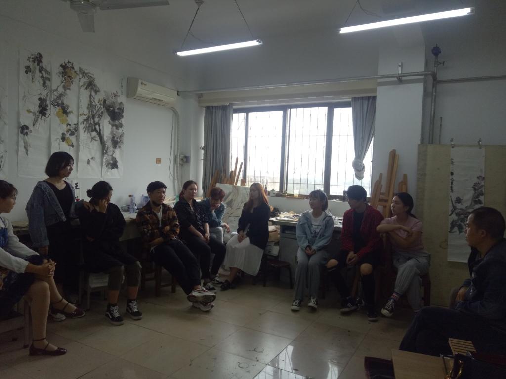 2019年9月19日上午,造型艺术系在艺术楼606室举办“中国画课堂教学及习作汇报观摩活动”。造型艺术系主任楚泓晋、相关专业教师以及2016级中国画专业本科全体员工参与了本次活动。楚泓晋首先介绍了本次观摩活动的概况、课程内容及教学目标,专业教师针对员工课堂习作展开了深入的课堂教学研讨,师生畅谈课堂学习和美术创作的关系,并相互交流对习作观摩活动的感想。