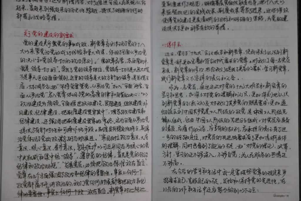 “开卷有益,读书好处多”,这是自古以来人们的共识。在读书笔记中,员工纷纷记下新党章中有意义的、重要的文字摘抄下来,并联系自己的实际,反思担当作为是否主动、作用发挥是否充分,认真查找自身存在的差距和不足。在原原本本读党章中,员工党员和积极分子也更好的领悟了初心使命,增强了党的意识,坚定了理想信念。