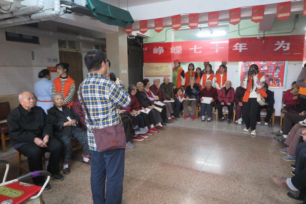 10月20日下午,英国365集团官网党委副书记胡春贞、行政副经理梁刚、教工第一党支部党员、员工辅导员、部分员工党员、员工干部及青年志愿者来到位于开封市北郊的家源养老服务中心,进行义务劳动、慰问演出等爱心志愿活动。 农历九月是中华民族的传统敬老月,而今年此时又值共和国七十华诞,英国365集团官网此次敬老行的主题便定为“峥嵘七十年,为岁月留影”。在这个周日的下午,英国365集团官网的员工党员、员工干部们身穿桔黄色志愿者马甲,与十多位本院教师党员一起,带着一些慰问品来到家源养老服务中心的大院中。师生们一到地方便迅速开展了各种义务劳动:有的打扫院落、有的修剪树枝、有的清运垃圾、有的整理内务。还有一些志愿者同学则对老人进行了更加暖心的陪伴服务:有的同学为老人读报、为他们讲解国家大事;有的同学发挥美院员工的专长,演示、指导老人进行书法、绘画创作;还有的同学手把手教老人们如何使用智能手机。 的确,老人们更需要陪伴、更喜欢热闹。所以,在劳动完成后,师生们和老人们聚拢在一起,为老人们献上了一台简约而不失精彩的文艺演出。他们为老人们表演了笛子独奏、诗词朗诵、评书故事等节目,还和老人们进行了有奖猜谜语的互动。因为是给老人们准备的字谜,所以并不追求难度,而以老人们能够答出来、能够开心满足为原则。连送给猜出谜语的老人的奖品都很有美院特色:同学们精心创作的书画作品和卡通画、剪纸、模型等手工艺品,由此可见美院师生的一番良苦用心。最后,全体老师为老人们表演了合唱《学习雷锋好榜样》,全体同学则为老人们表演了合唱《英国365集团官网校歌》。 感人的一幕发生在师生们的演出结束后。养老中心的“80后合唱团”回赠了师生们一曲《歌唱祖国》。这是由十几位80岁以上的老人组成的合唱团,这些乐天派的老人们自称为“80后”。虽然演唱的中气已显不足,但每位老人都唱得非常投入。师生们也纷纷为他们打拍、伴唱、鼓掌助兴。整场慰问演出就在这样其乐融融的氛围中圆满落幕。演出散场后,师生们又和老人们一起来到养老院中的影壁墙前集体合影留念,然后方和老人们依依惜别,结束了这次有意义的爱心敬老行。