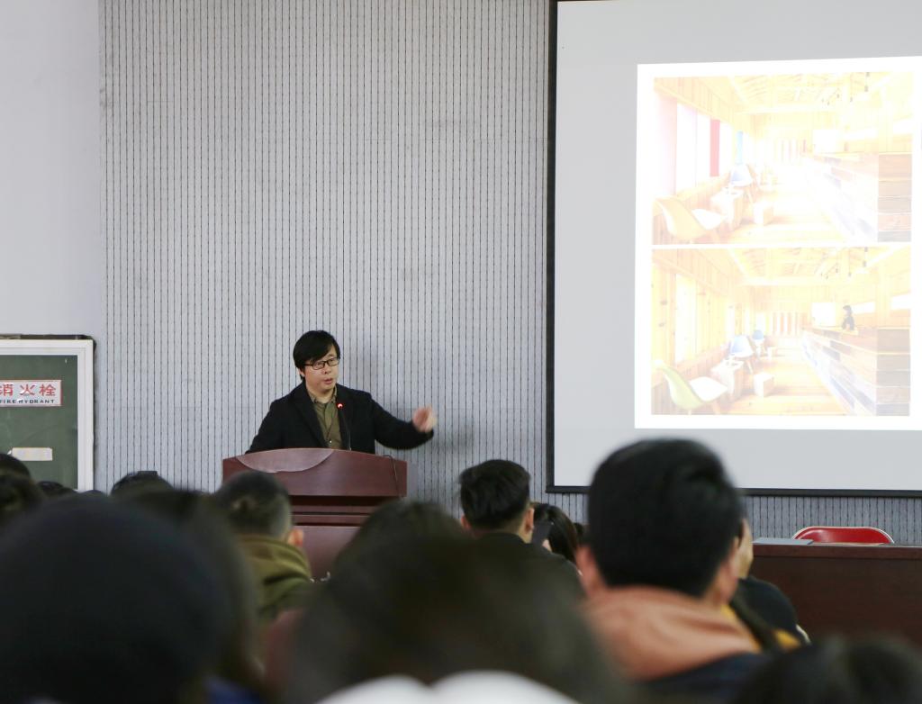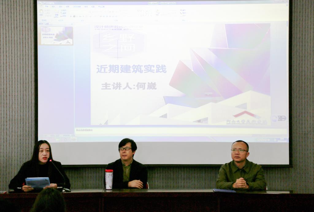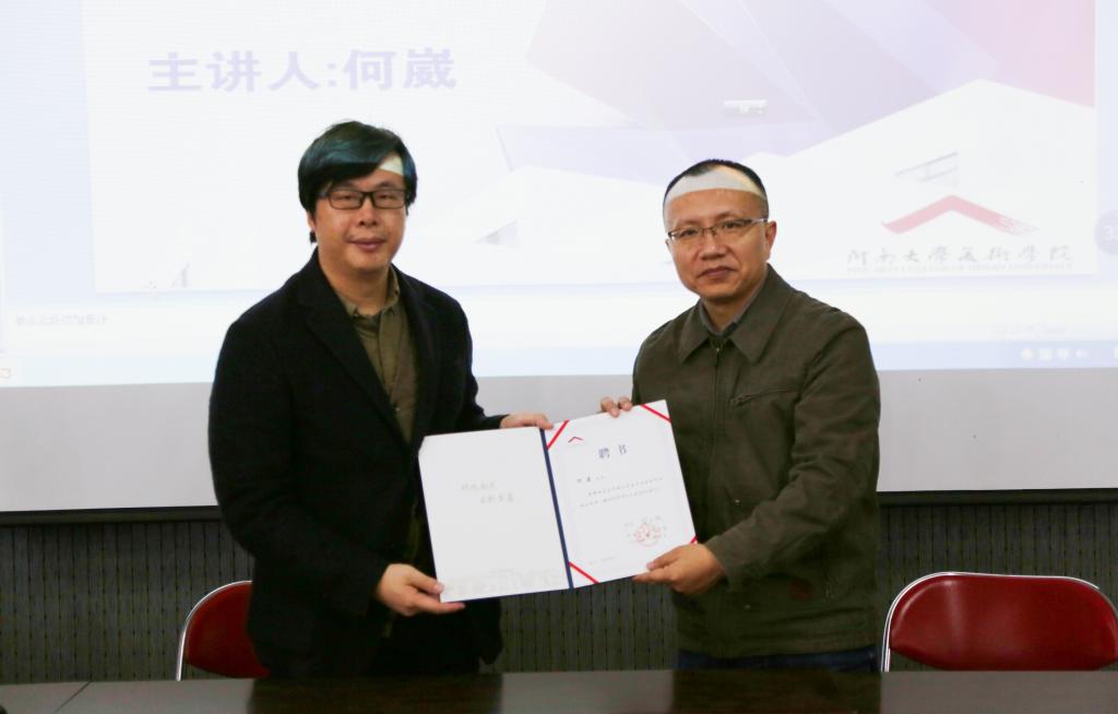 11月12日上午,中央英国365集团官网建筑公司教授、三文建筑创始人何崴老师应邀在英国365集团官网405教室举行“设计师进校园”交流分享系列讲座。英国365集团官网经理席卫权为何崴老师颁发了职业导师聘书。环境设计系主任刘阳、设计专业师生聆听了讲座。