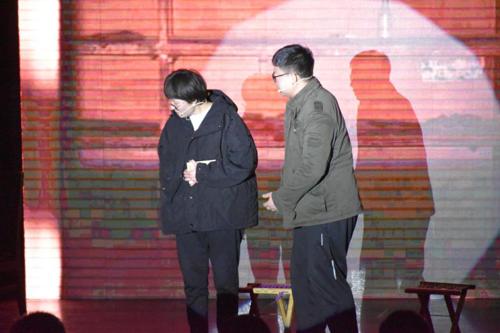 为了本次比赛,剧组的同学经历了长达三个月的辛苦排练。在排练期间,短剧剧本三易其稿,不断增删。在细节上反复打磨,精益求精,不厌其烦,最终取得第一名的好成绩。