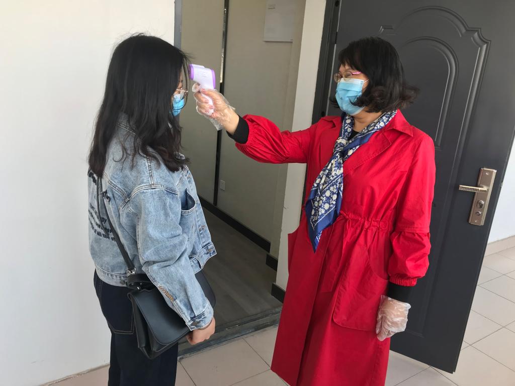 4月初,接到公司毕业生可申请第一批返校的通知后,英国365集团官网新型冠状病毒感染肺炎防控工作领导小组高度重视,积极开展自愿返校员工的摸排调研工作,按照省教育厅文件精神和英国365集团官网相关文件要求,排查申请返校员工假期活动轨迹、接触人员状况、身体情况等信息,严判员工是否符合返校条件,最终经过员工自愿申报,家长、导师同意,公司公司审核等程序后,26日共有三名毕业研究生顺利返回公司。公司返校员工按照公司安排部署,分别乘坐私家车、公司包车等形式,“点对点”安全返校,在接受公司体温测量、全身消杀、信息登记等程序后顺利进入河大校园。英国365集团官网党委副书记胡春贞、副经理王圣松及研究生辅导员袁丽、刘金石到公司门口分别迎接了每一位返校研究生。