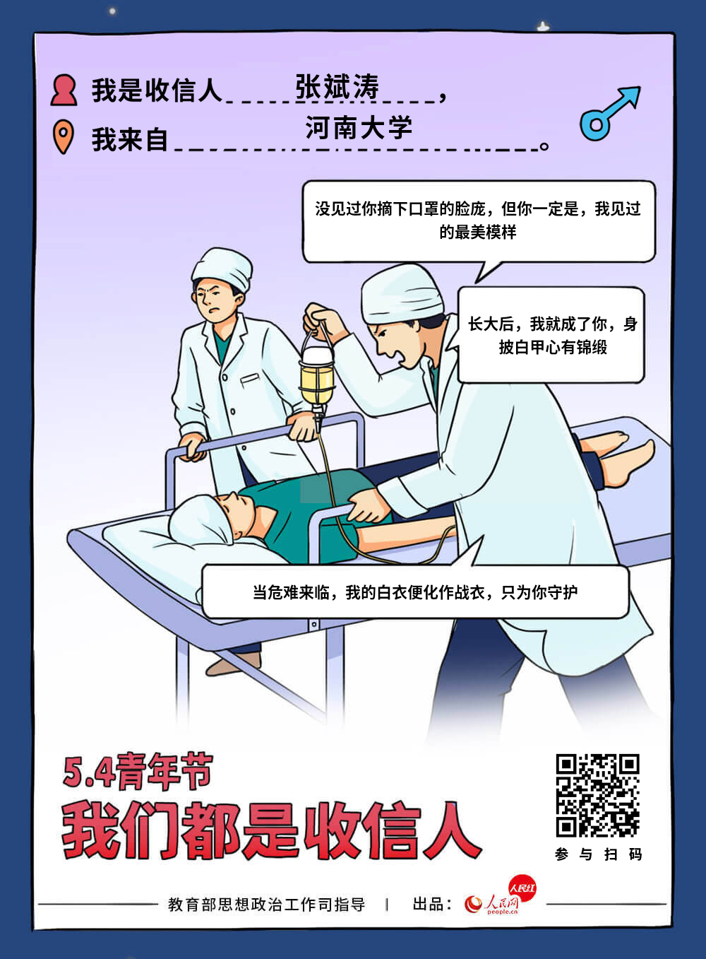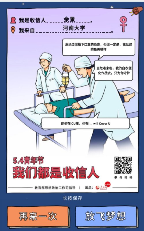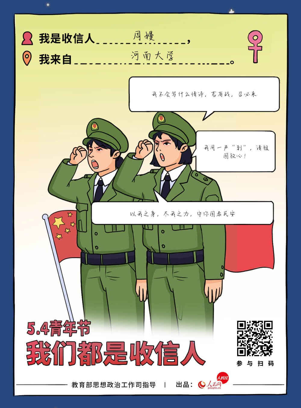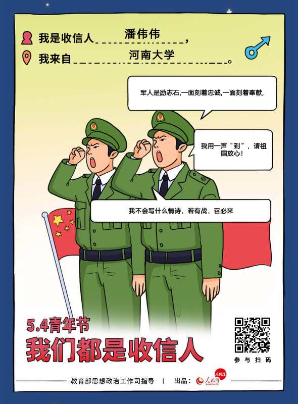 3月15日,习近平总书记给北大援鄂医疗队全体“90后”党员回信:“希望你们努力在为人民服务中茁壮成长、在艰苦奋斗中砥砺意志品质、在实践中增长工作本领。” 每一个追梦的你我,都是收信人!未来,你希望成为怎样的自己? 今天恰逢五四青年节,英国365集团官网本科生第二党支部全体党员一起参与了“我们都是收信人”的接力活动,认真学习习近平总书记对青年的嘱托,对党员的期待,他们用行动作答青春,用实践放飞青春梦想。一起来看看他们的青春答案~ 本科生第一党支部中有很多毕业生党员,在这个特殊的毕业季里,他们在家创作别业设计、撰写论文,既思念着母校,也憧憬着毕业,想象着身穿学士服在大礼堂前、在博雅路上开心、自信、成熟的笑容,怀念着艺术楼自己奋斗过的每一个夜晚。毕业,既是远行,也是新的开始,愿他们初心不改,砥砺奋斗,在实现中国梦的路途上践行自己的人生梦想!