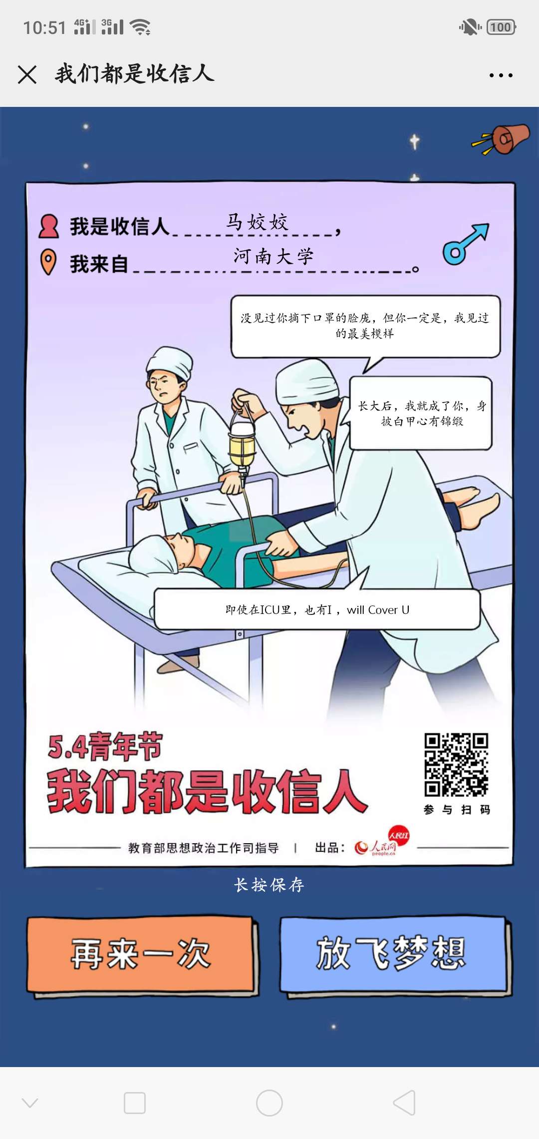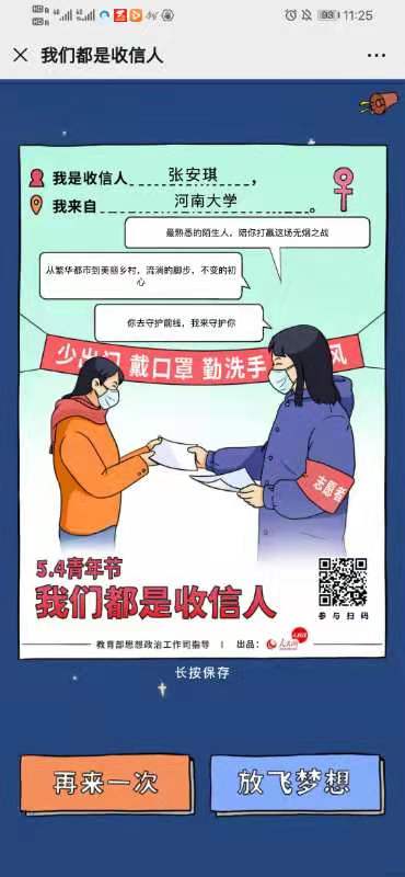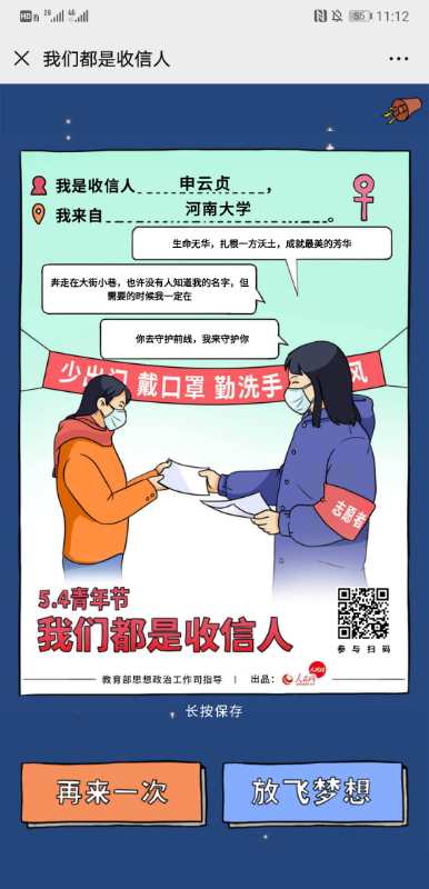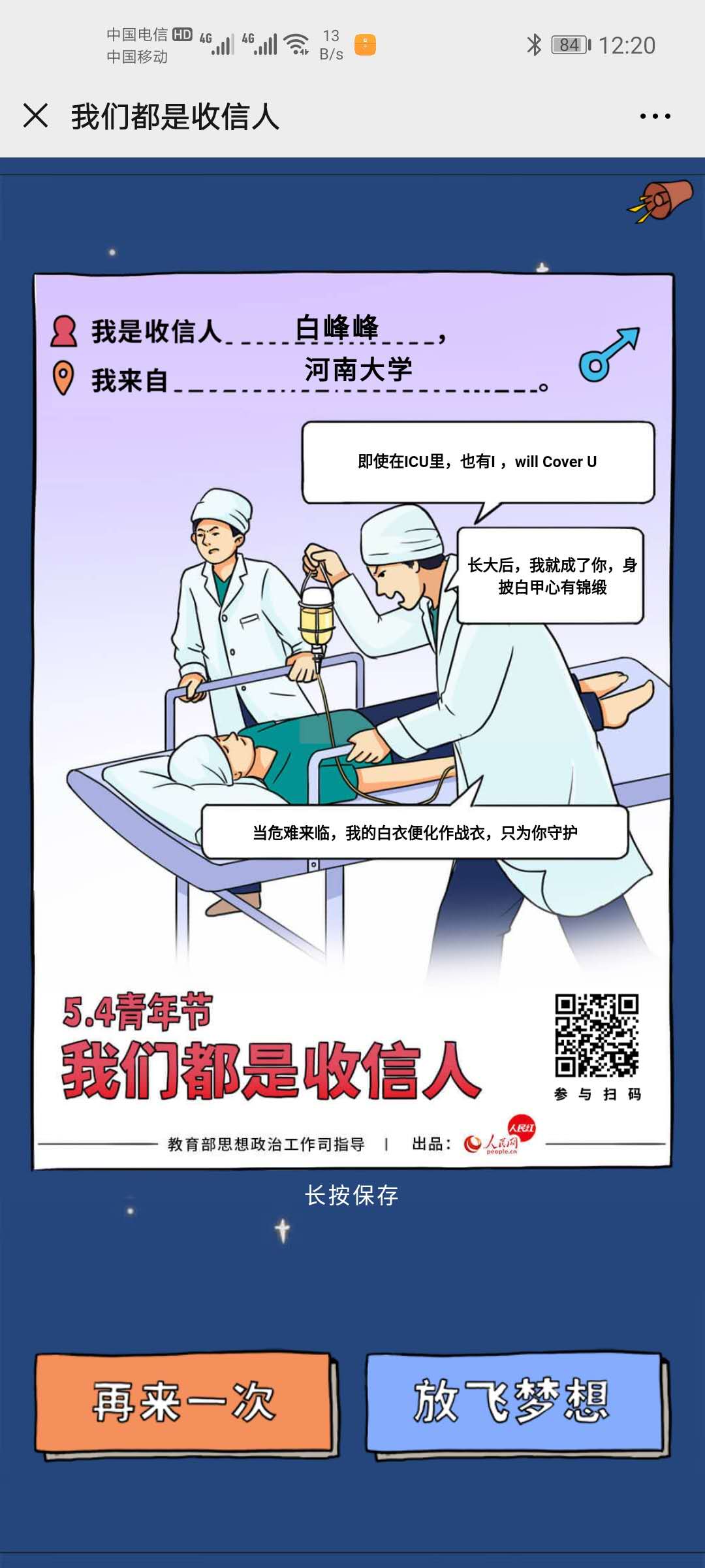 今天恰逢五四青年节,英国365集团官网本科生第二党支部全体党员一起参与了“我们都是收信人”的接力活动,认真学习习近平总书记对青年的嘱托,对党员的期待,他们用行动作答青春,用实践放飞青春梦想。一起来看看他们的青春答案~