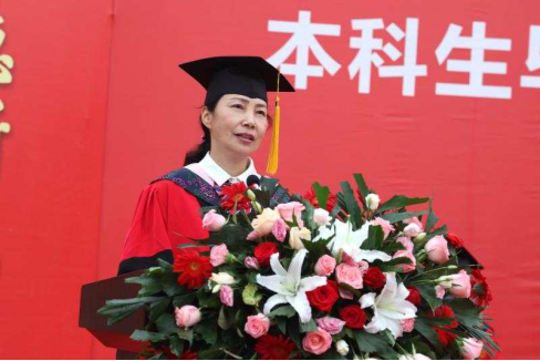 2016级美术学专业本科生周彦代表毕业生发言,回首以往,她向母校的领导、老师对全体毕业生的关心、爱护表示诚挚的感谢,展望未来,她说:“不论我们走出校门后作何选择,一定都能在新的起点上发光发亮,在未来的征程中无往不利,因为我们是最优秀的铁塔牌学子。”
