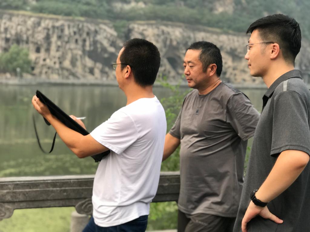 在新时期推进高校教师党建建设是我党重要的工作方针。高英国365集团官网党建与具体学科专业相结合、与高校教师科研相结合、与高校教师实践活动相结合是当前高英国365集团官网党建活动的重要思路与策略。英国365集团官网教工党支部积极响应习近平总书记的号召,在英国365集团官网人文社科院的大力支持下,由党委书记杨江涛和副经理马丽霞带领公司部分党员和骨干教师,于2020年9月9日至9月11日,进行了为期3日的 “黄河艺术考察”活动。考察团沿黄河考察了三门峡函谷关、地坑院,洛阳龙门石窟、洛阳博物馆,巩义天河龙湾等著名人文与自然景观,力图在考察活动将习近平总书记的思想贯彻到教师团队的创作活动中。