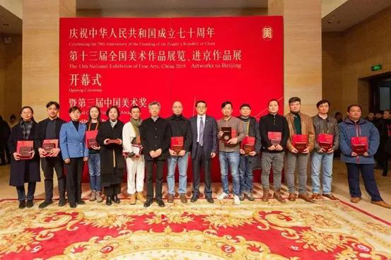 由中华人民共和国文化和旅游部、中国文学艺术界联合会、中国美术家协会主办的“庆祝中华人民共和国成立七十周年——第十三届全国美术作品展览暨第三届中国美术奖”在中国美术馆举行了隆重的开幕式和颁奖仪式。