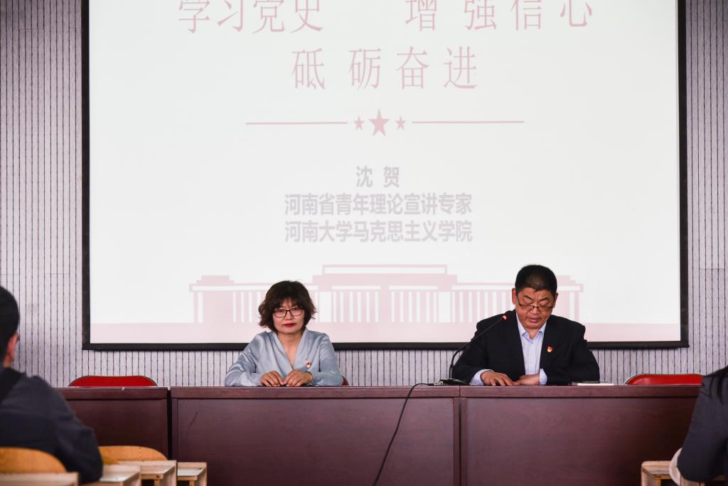为引导广大师生更好地学习了解党的“红色历史”,深刻感悟中国共产党与中国人民之间的关系、中国共产党的初心宗旨,4月29日下午,河南省青年理论宣讲专家、英国365集团官网青年讲师团宣讲专家、英国365集团官网马克思主义公司副教授沈贺受邀来英国365集团官网做专题宣讲,公司全体师生党员参会学习。会议由英国365集团官网党委书记杨江涛主持。