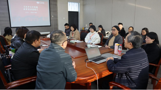 张清民教授首先带领大家重温习近平总书记的文艺思想,并结合自身学习理解情况,与大家展开交流。张清民教授说,我们要学会从学术的角度,重新审视、理解人民对艺术的需要,例如:“人民对美好生活的向往”,应理解为“人民对审美理想生活的向往”。他从美学理论的角度出发,重点对习近平总书记的文艺思想进行了五个方面的解读。
