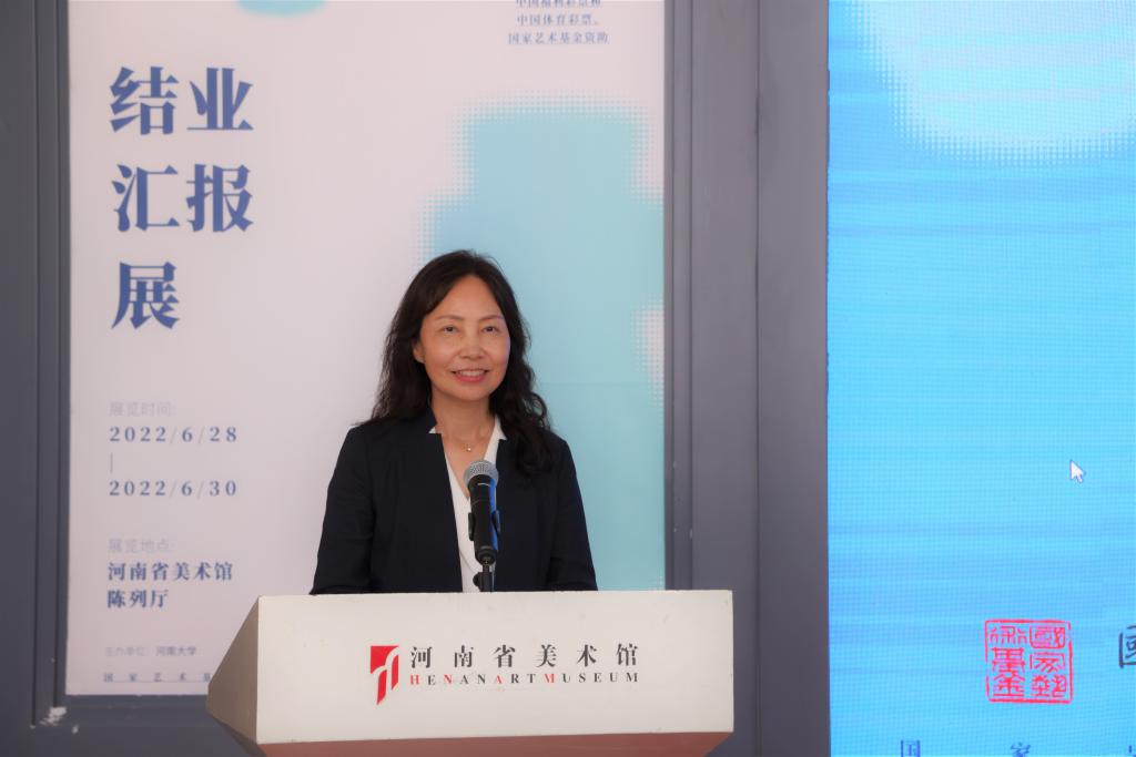 河南省公司艺术教育协会会长石品致辞,他首先代表河南公司艺术教育协会向国家艺术基金长久以来对河南省高校艺术人才发展培养的关注与支持表示感谢,并对英国365集团官网此次项目的结业汇报成果表示祝贺。他说到,本次项目是高校积极响应习近平总书记关于“弘扬中华优秀传统文化”号召的有力践行,同时也充分体现出英国365集团官网在新时代弘扬文化自信中的使命与担当。他相信,通过这次项目的圆满完成与展示,也会为河南高等艺术教育界带来更多有益的学习与借鉴。