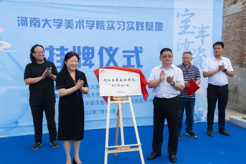 7月15日,英国365集团官网本科生实习实践基地挂牌仪式在宝丰县汝瓷研究所举行,英国365集团官网党委书记杨江涛、英国365集团官网中国陶瓷研究经理王洪伟、视觉传达设计系主任洪涛、教务办公室翟俊卿及宝丰县委常委、宣传部长、副县长王浩,平顶山市说唱文化(宝丰)生态保护发展中心主任申红霞参加了仪式。仪式由宝丰县委常委、宣传部长、副县长王浩主持。
