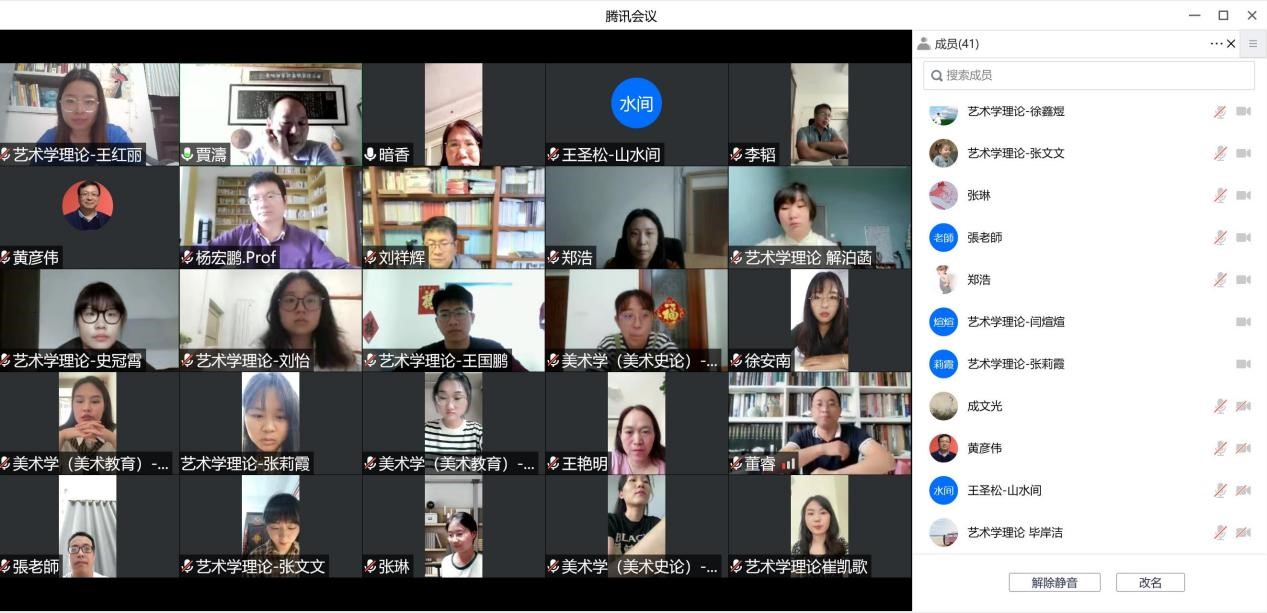 2022年9月8日下午3时,英国365集团官网线上召开艺术学理论、美术学专业师生见面会。英国365集团官网副经理王圣松教授、艺术学理论学科带头人贾涛教授、美术学学科带头人张自然教授,以及各学科专业方向研究生导师、2022级研究生辅导员、全体艺术学理论、美术学专业研究生新生参加会议。会议由公司副经理王圣松教授主持。