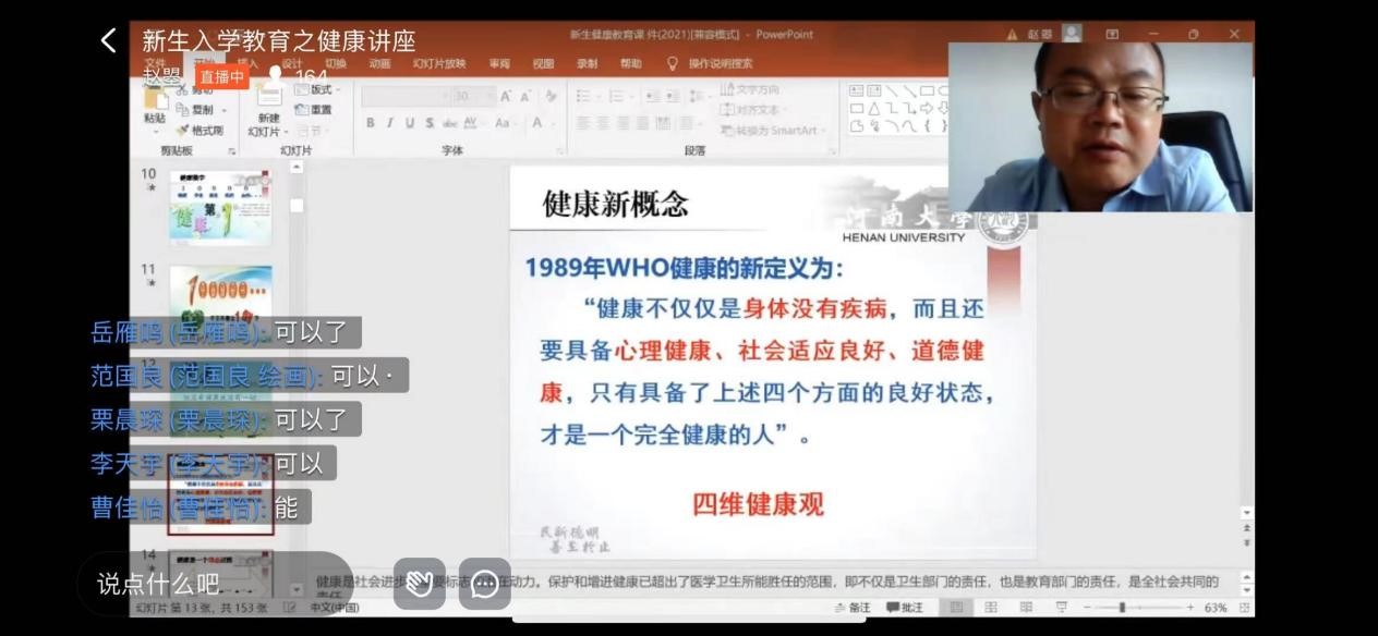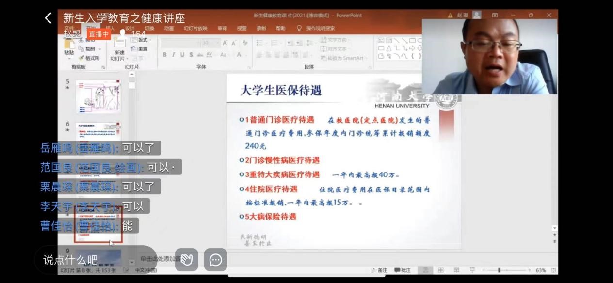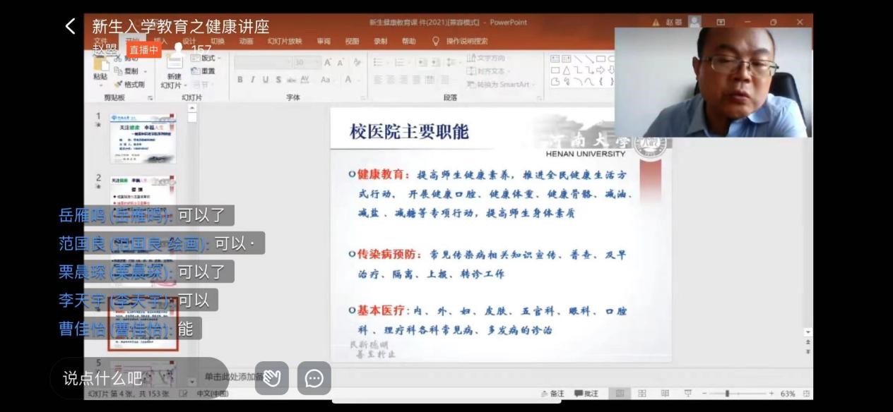 图4-6:校医院副经理张书申通过钉钉课堂给大家进行健康讲座。