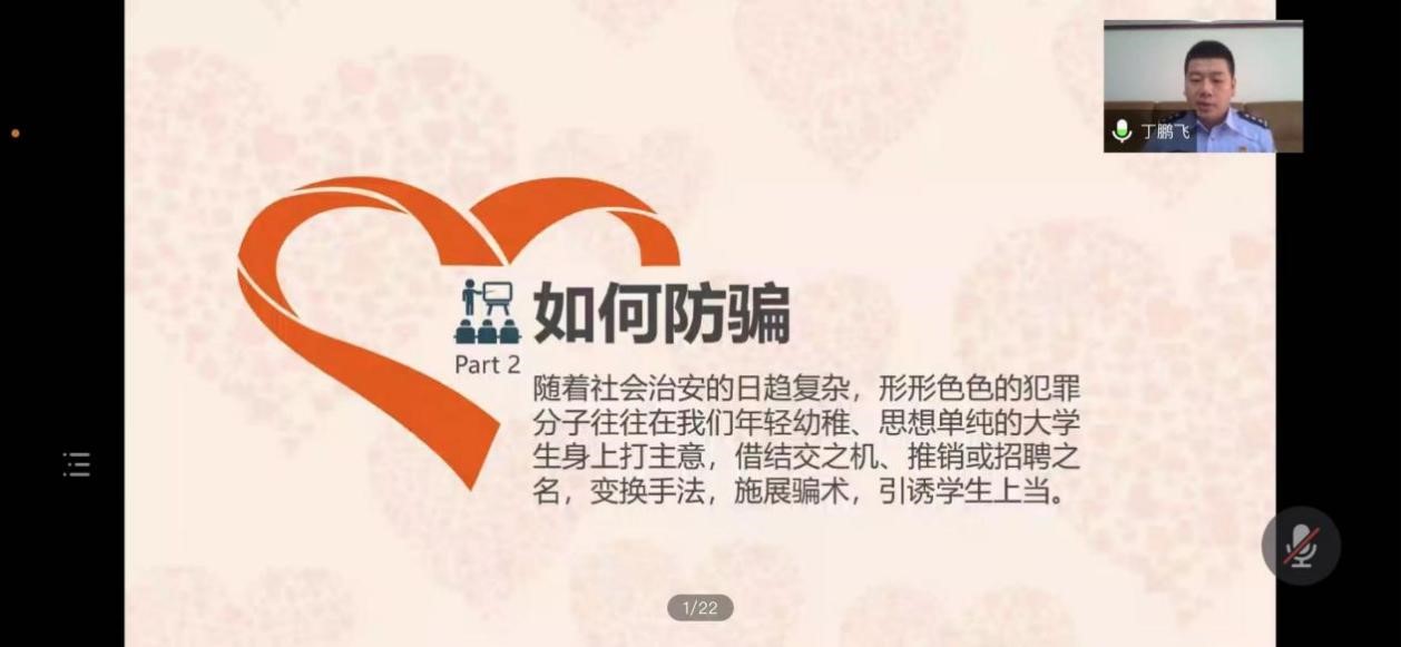 通过此次反诈防骗宣传,丁队长也提出了对大家的期盼,他希望所有同学通过系统的反诈知识学习后,能更加清晰的了解非法分子实施非法活动时通常采用的各种手段,从而做到更好的自我保护。使大家在安全的环境中顺利的度过美好的老员工活。