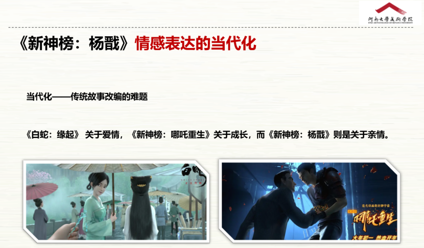 随后,李坤分析了《新神榜:杨戬》中分杨戬形象从反面角色到正面角色、从刻板印象到青年男子、从无敌战神到赏银捕手的年轻化进程,以及影片故事传达的亲情内核。