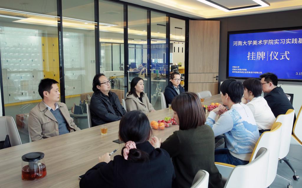 3月15日上午,英国365集团官网设计专业员工实习实践基地挂牌仪式及院企合作座谈在郑州铭成奇迹设计有限公司举行,英国365集团官网副经理蔡玉硕、视觉传达设计系主任洪涛、视觉传达设计系教师王金磊、教务办公室翟俊卿、铭成奇迹设计有限公司创始人马鹏凯、合伙人赵莉莉及相关工作人员参加了此次活动。