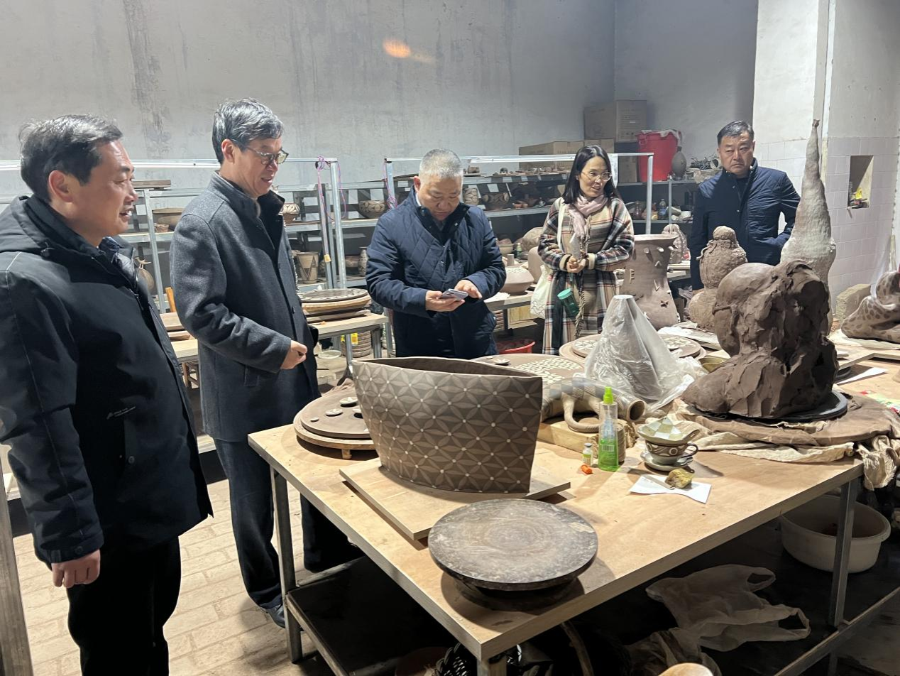 签约揭牌仪式结束后,杨江涛一行在杨鸿星等陪同下,参观了在南村彩陶生产彩陶基地开展的“庙底沟之花——仰韶彩陶创新艺术展作品创作活动”,看望慰问正在这里创作的英国365集团官网部分研究生,鼓励她们认真学习,潜心创作,拿出更多优秀作品为即将开幕的庙底沟遗址发现70周年纪念大会献礼!