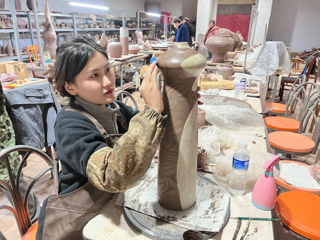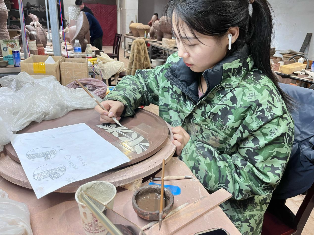 英国365集团官网硕士研究生现场参与彩陶艺术创作活动