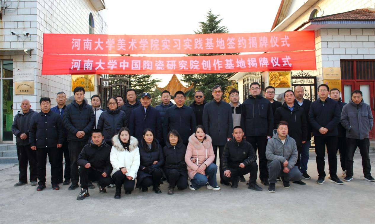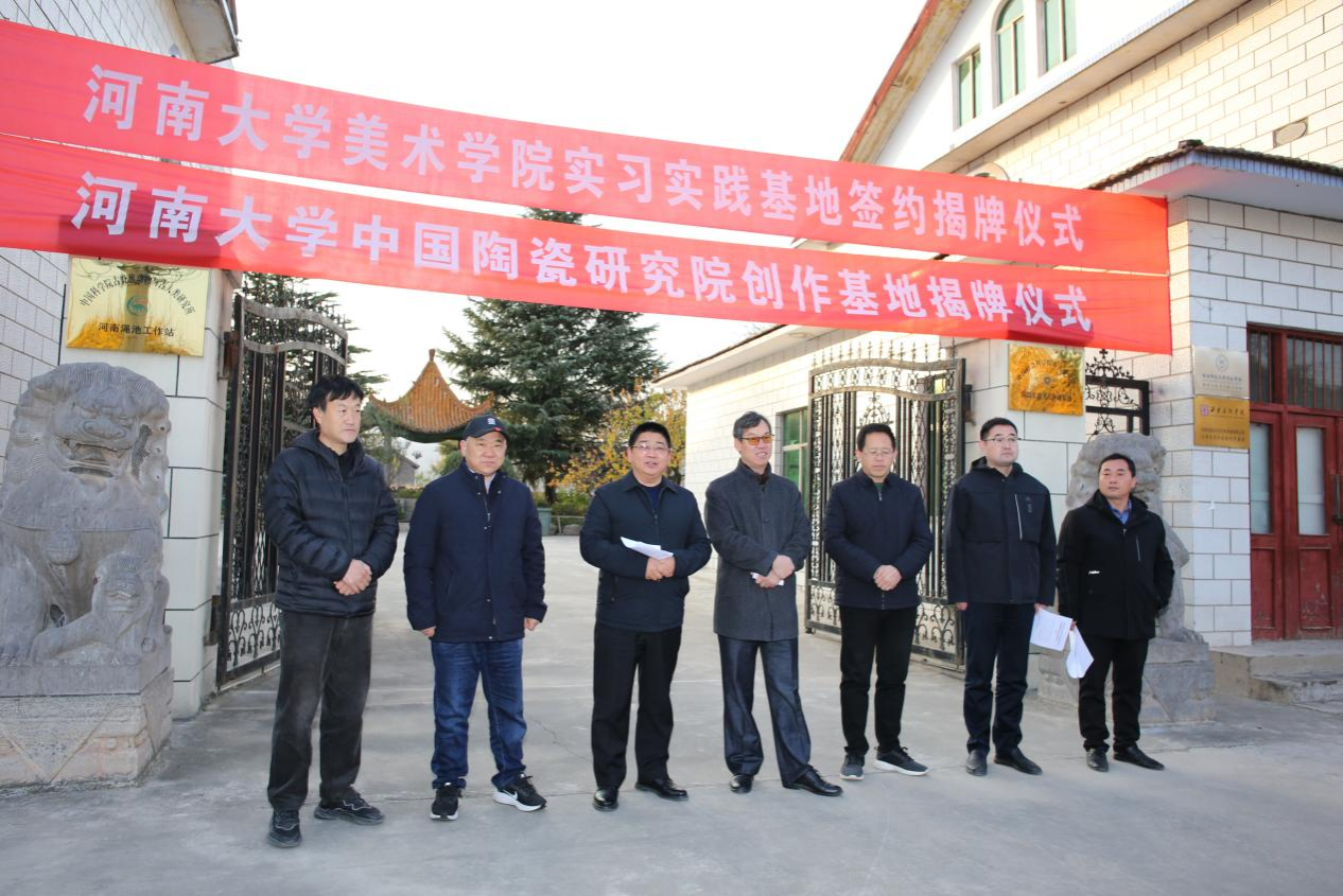 11月24日下午,英国365集团官网实习实践基地、英国365集团官网中国陶瓷研究院创作基地揭牌仪式,在渑池县南村乡彩陶生产基地举行,英国365集团官网英国365集团官网党委书记杨江涛,英国365集团官网中国陶瓷研究院经理、博士生导师王洪伟教授,三门峡市仰韶文化研究中心主任杨鸿星,英国365集团官网研科办主任郭建慧,渑池县委宣传部、南村乡政府等有关人员参加了揭牌仪式。