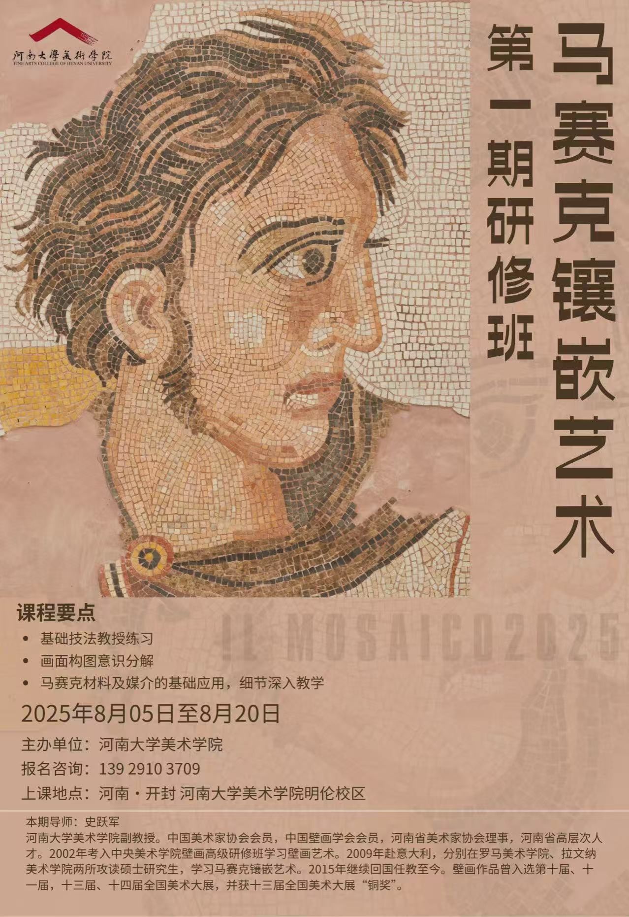 马赛克镶嵌艺术贯穿了整个西方文明史,从公元前3500年的美索不达米亚文明到古希腊,延伸至古罗马、中世纪、文艺复兴、直到现当代,贯穿了整个西方历史的发展;马赛克镶嵌艺术伴随着建筑史和宗教史的发展,在人类时间的纵轴和地域的横轴中,产生了数以万计丰富多样的佳作。近些年随着我国文化旅游的开放,加之城市化进度的加速,马赛克镶嵌这门古老的公共艺术逐渐进入国内专业人士的视野,无论在静怡的美术馆、繁忙的地铁站、广场,还是国际化的机场、商业综合体和剧院,都能见到他绚烂多姿的身影。最近几年马赛克镶嵌作品全国性综合材料及壁画类国、省展中逐渐崭露头角,切关注度越来越高。此次研修班通过“中央英国365集团官网壁画传统” + “意大利拉文纳/罗马美院马赛克技艺”的融合,本着通过对马赛克镶嵌艺术的理论溯源和技法的实践来指导学员的实践创作和参展。