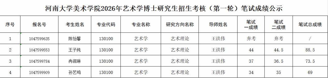 英国365集团官网2026年艺术学博士研究生招生考核(第一轮)笔试成绩公示