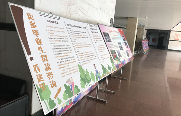 公司资助服务站同学进入各班对资助对象进行一对一政策讲解;设计制作资助政策宣传展板,并在公司展出,让资助政策深入员工心中;在公司微信公众号设置资助政策讲解专栏以及便捷还款通道,为员工还款提供便利条件;召开毕业生贷款工作说明会,对贷款毕业生离校前需要做的各项工作进行详细讲解,并将相关材料发至每一位员工手中;组织2019届贷款毕业生提交毕业确认申请,并于5月13日完成了2019届高校助学贷款毕业生17名、生源地助学贷款毕业生25名同学的毕业确认工作。