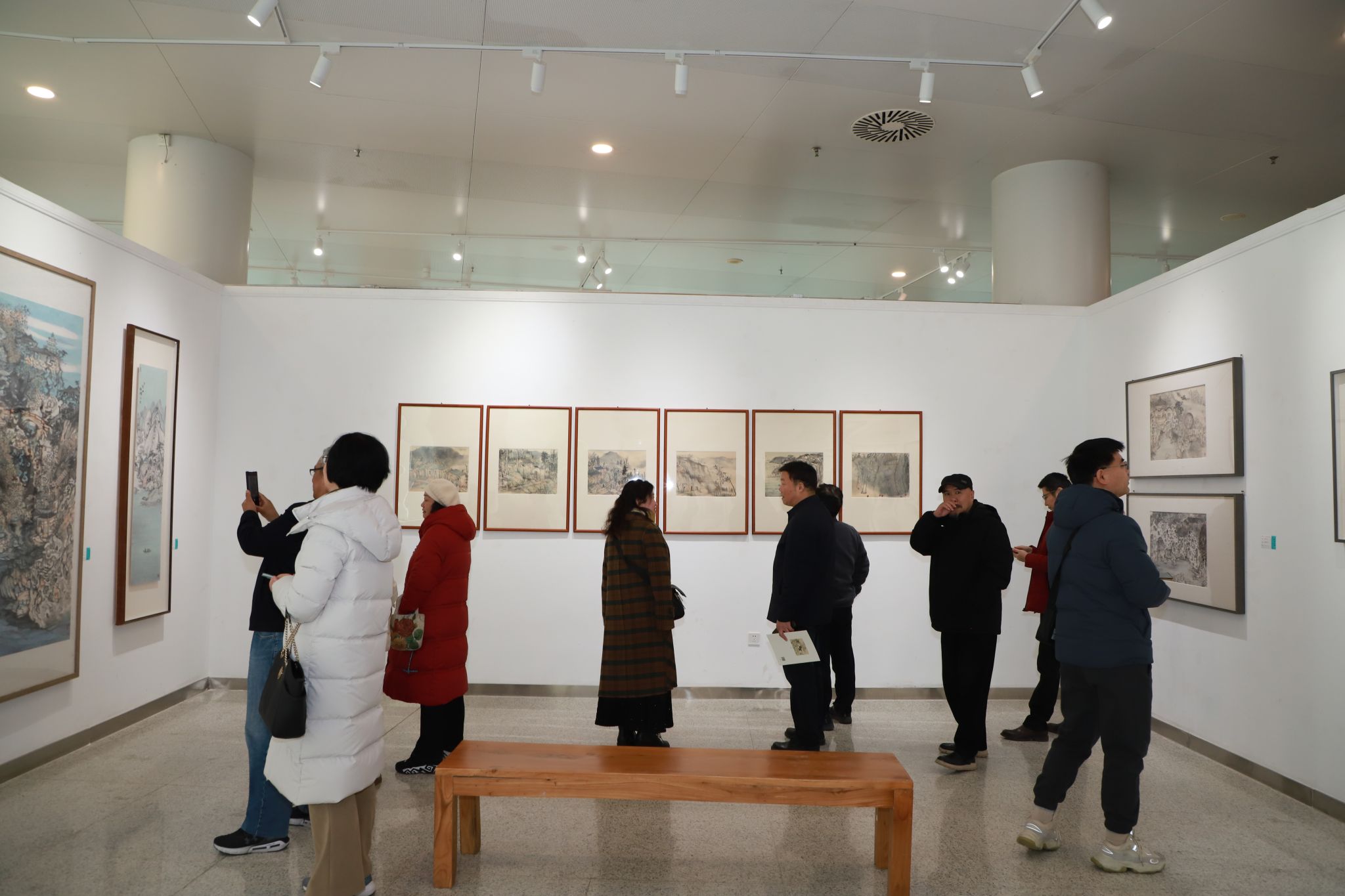 展厅内,近百幅山水画作品集中亮相,为大家带来了一场精彩的艺术盛宴。既有程灿的代表作,也有一批具有探索精神的新水墨风格的艺术作品。程灿的这些作品从传统中来,又师于自然,将传统语汇融入自然中。作为高校教师,她在外出采风写生的过程中,自觉在自然中寻觅自己的艺术特色,积极致力于传承和弘扬中国传统绘画艺术,也为员工树立了良好的榜样,使员工在领略自然之美的过程中获取创作灵感,增进对山水画的理解与感悟,引导他们在艺术道路上不断前行。