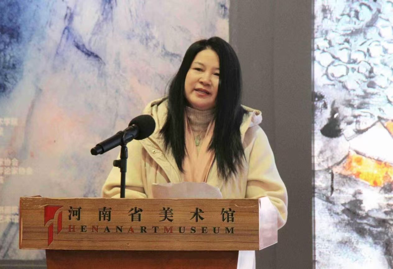 程灿教授在答谢词中,对出席开幕式的领导和嘉宾,对筹办此次展览的河南省美术馆,对公司和社会各界友人表达了诚挚的谢意。她表示,此次展览的作品大多以河南地域的自然和人文景观为主,是在带领员工外出采风、写生的过程中创作的。这不仅是对她自己近年来绘画探索的总结,更是从写生到创作的心路历程的展示,希望能够为创作出“可行、可望、可居、可游”的山水画作品提供新的思路与启示。