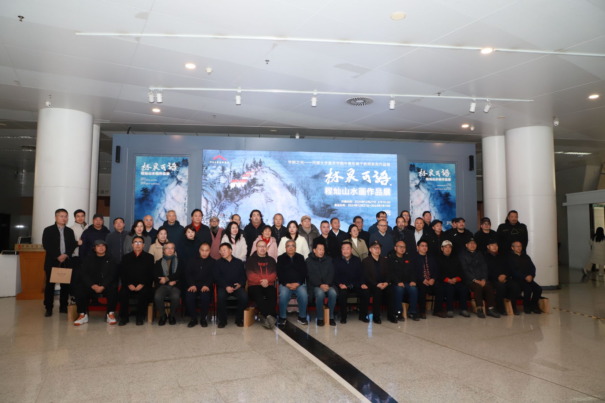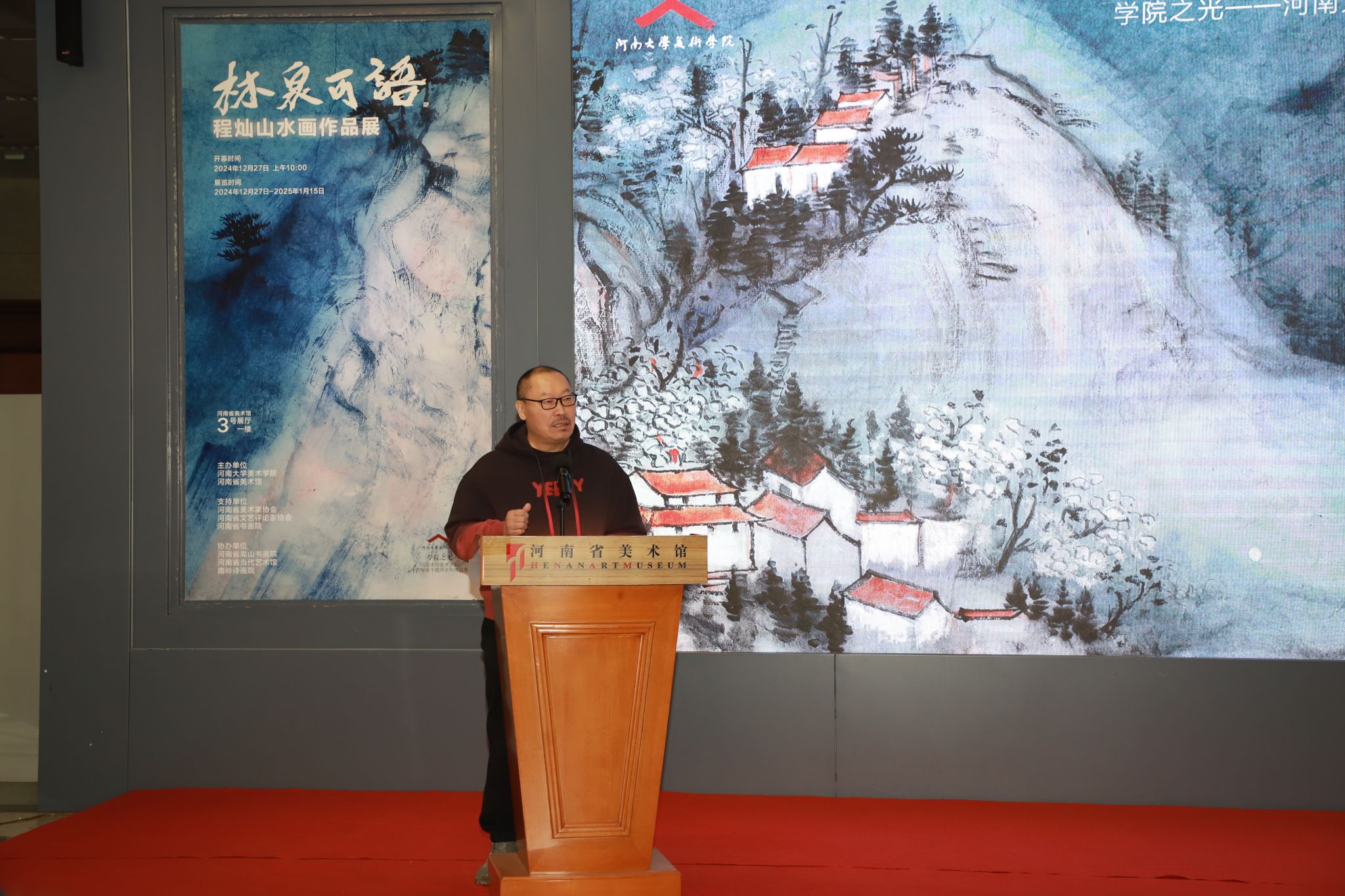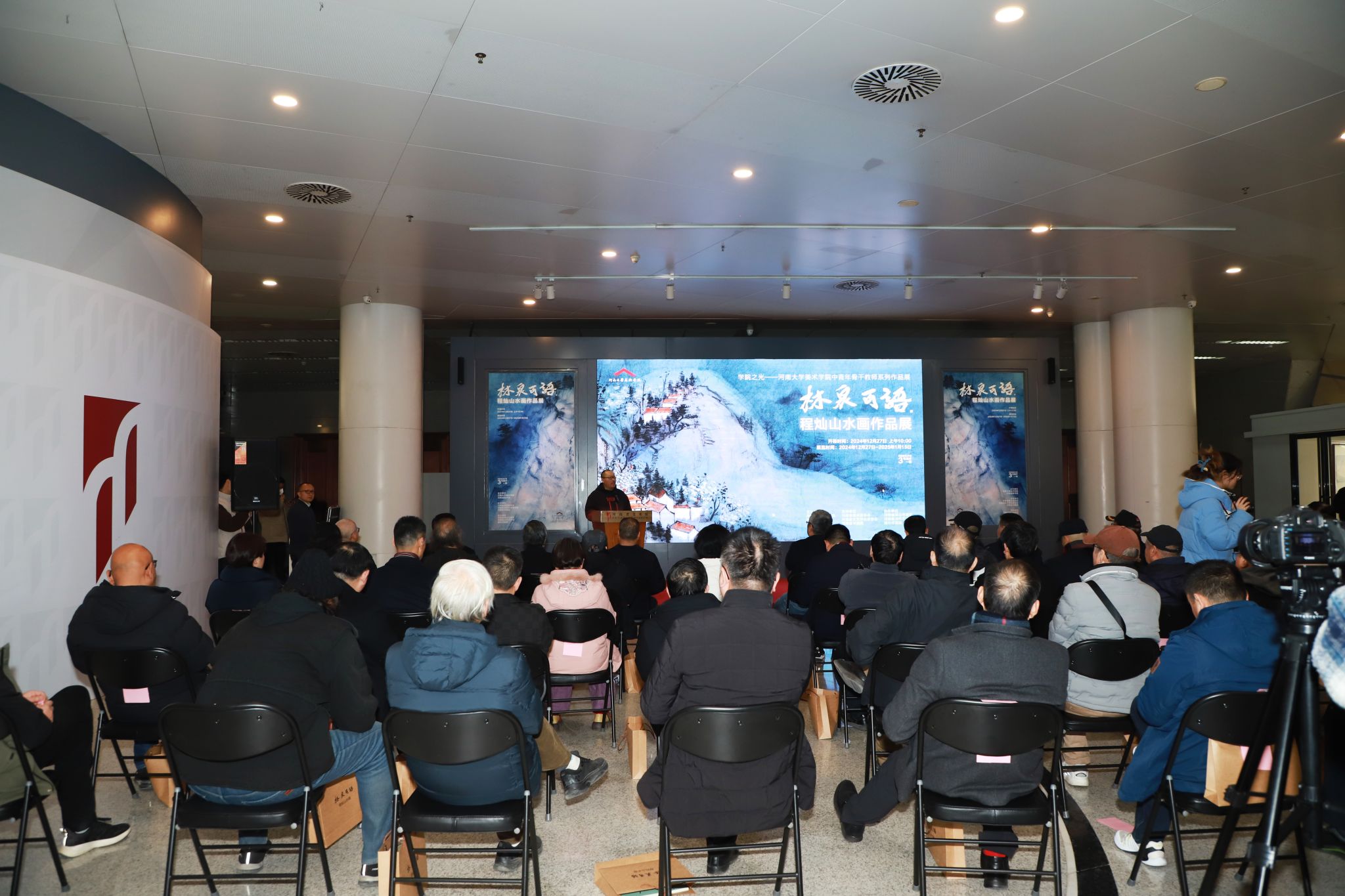 12月27日上午,“林泉可语——程灿山水画作品展”在河南省美术馆开幕。河南省委宣传部原副部长胡昌国,武警河南省总队原副司令员李建平,英国365集团官网原党委书记卢克平,河南省委原网信办副主任、一级巡视员蔡新民,河南省委咨询组研究员、河南省公务员局原局长刘京州,河南省机构编制委员会办公室原副主任孔祥敬,民革河南省委会二级巡视员钱新建等领导出席。河南省书画院原经理、河南省美术家协会顾问谢冰毅,中国艺术研究院研究生院导师、教授韩学中,郑州英国365集团官网董事长、河南省公司艺术教育协会会长石品,河南省文联兼职副主席、河南省美术家协会副主席沈钊昌,文化和旅游部艺术发展中心专职画家、研究员张宝松,中国美协理事、河南省美协驻会副主席、秘书长陈文利,河南省美协顾问、版画艺术委员会主任程兆星,河南省美协原副主席、英国365集团官网教授袁汝波,河南省美协副主席连俊州、白金尧、杨健生,河南省美术馆书记、馆长董继武,河南省美术馆副馆长郭黎莅、高敏,郑州市文联原主席、郑州市政协二级巡视员钟海涛,郑州航空工业管理公司艺术与设计公司经理冉玉,郑州市文联副主席、郑州市美协党支部书记、副主席贾发军,河南省妇女书画协会会长张丽霞,郑州市政协嵩山书画院执行经理张革,郑州市美协副主席田占峰,英国365集团官网英国365集团官网党委书记杨江涛、经理席卫权、副经理马利霞、学术委员会主任彭西春,公共艺术教研部主任肖海英及汪振军、邬建、王伟、贾涛、高建华、崔云凌、程勇、高保军、杨万军、孙正林、刘源、魏志雄、曹永智、张新志、高贵友、马饮川、史泉山、陈克西、郭贵兴、王志超、张建峰、张新东、赵海潮、董睿、井晓雪、楚泓晋、张静、郑龙强、王庆龙、王一婷、付万全、丁一心、仲海波、王洪军、李辉、毛保增、刘筱静、王蒲青,李长生、宋文斌、江加旺、冯和靖宇、弓华、刘老皮、李登辉、杨树玉、刘全胜、黄志刚、李子峰等艺术界嘉宾、高校教师及员工代表、艺术爱好者200余人参加开幕式。开幕式由英国365集团官网经理席卫权主持。