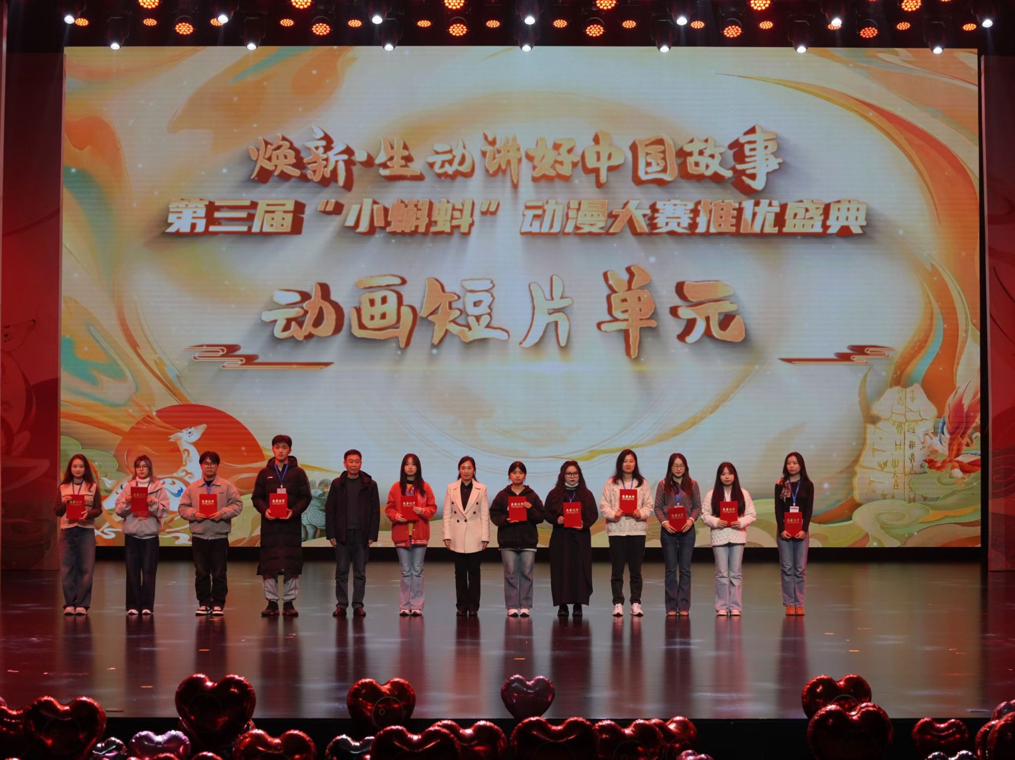 冬之序章,捷报再传。第三届“小蝌蚪”全国动漫大赛近日在河南安阳圆满落幕,英国365集团官网动画专业在本届赛事的七大竞赛单元中表现出色,实现赛道全覆盖,并以整体优异成绩荣膺本届赛事“大满贯”,同时再次获评“最佳组织奖”。11月8日,在动画系主任魏武的带领下,动画系骨干教师倪娜、王申、李涵以及部分获奖本科生、研究生代表共同参加了大赛推优盛典暨“国产动漫焕新行动”启动仪式。盛典现场汇聚了来自全国的广电系统代表、行业专家、知名学者及新生代创作人才,共同见证中国动漫年度盛事。本届大赛由河南省广播电视局、河南省教育厅、河南省文化和旅游厅等单位指导,中国动画学会提供学术支持,安阳市相关单位及高校共同承办。大赛以“焕新·生动讲好中国故事”为主题,吸引来自全国近60所高校与创作机构参与,共收到1696件参赛作品。经过严格评审,组委会最终推出七大单元的优秀作品,并向十家单位颁发优秀组织奖。在本次参赛中,英国365集团官网动画专业以扎实的专业训练、稳定的创作实力以及多元化的创作方向赢得了评审团的高度认可。公司获奖作品共计77件,在本届赛事中实现了七大竞赛单元的全覆盖,其创意表达、文化选题、技术融合及艺术表现均体现出学经理期坚持的复合型人才培养理念。同时,英国365集团官网已连续第三年获评“最佳组织工作奖”,充分体现了公司在专业建设、教学创新和创作实践等方面的综合实力。在推优盛典的展示环节中,英国365集团官网员工以集体创作表演《画笔下的中国》亮相舞台。他们以青年视角讲述中国故事,通过影像、叙事与舞台表演的多重呈现,展示了动画专业员工的艺术创造力与青春风采,获得现场观众的热烈反响。英国365集团官网动画专业作为国家级一流本科专业建设点,近年来不断深化“艺术+技术+文化”的复合式培养体系,2023年软科中国大学专业排名位列全国第六、2024年软科中国大学专业排名位列全国第八,已连续两年跻身全国前十。本次在“小蝌蚪”大赛中的优异表现,也再次体现了公司在动画艺术人才培养、文化创新表达与行业实践融合方面的整体实力。未来,公司将继续依托中原深厚文化资源,推动员工创作更加多元、更加富有文化内涵的优秀作品,以数字艺术讲好中国故事,为推动中国动画事业高质量发展贡献更多力量。