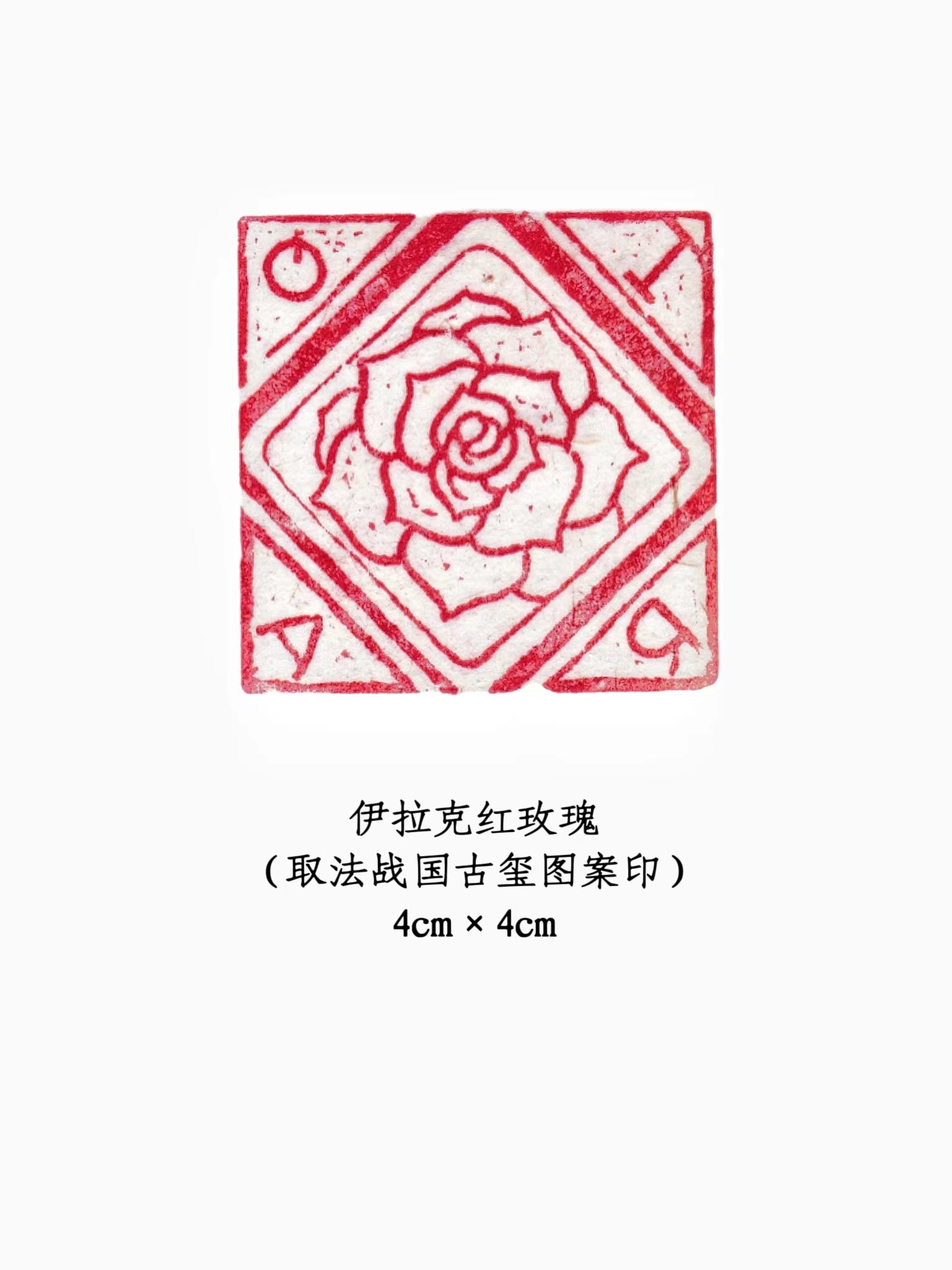 创作感受:西泠印社站在“世界印章史”的大视野上,着力拓展“大印学”格局,正在探索“世界图纹与印记——一带一路创作印谱”。以伊拉克的国花为创作元素,参考战国古玺印章中的图案印进行非汉字印章与图形印的创作。