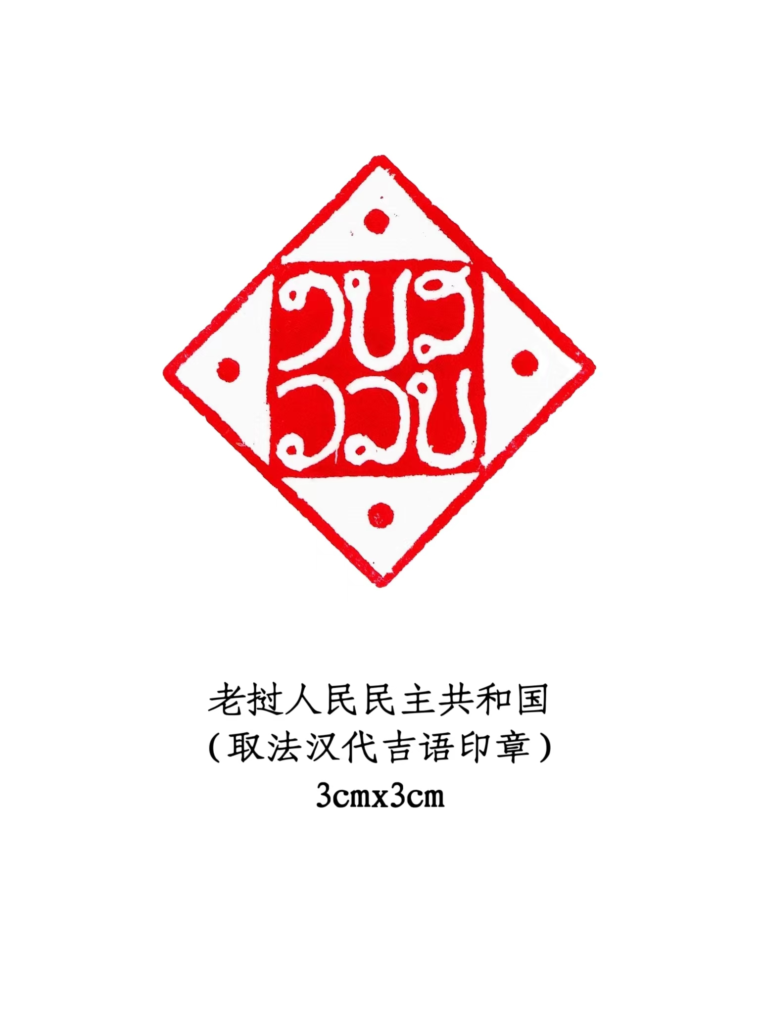创作感受:此次篆刻立足创新思维,放眼世界文字,师法传统优秀印章,首用老挝寮语简称作印面文字,既而翻阅中国古代吉语印,印式取法汉代吉语印章,图纹与印式并融的秩序感及古风古韵的体现为创作难点,汲古养今拓宽艺术审美。