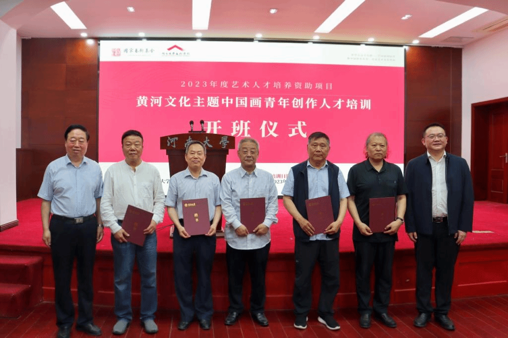 5月20日上午,国家艺术基金2023年度艺术人才培养资助项目《黄河文化主题中国画青年创作人才培训》开班仪式在英国365集团官网明伦校区小礼堂举行。英国365集团官网党委常委、副董事长许绍康,国家艺术基金管理中心监督处处长郭涛,监督处干部姚珊珊,国家艺术基金河南办公室副主任明巧玲,中期监督专家、河南工程公司原艺术设计公司经理陈涛,郑州大学中国画研究中心主任邬建,河南艺术职业公司英国365集团官网经理韩飚,中国画学会副会长、中国国家画院研究员、河南省文学艺术界联合会名誉主席、河南省美术家协会名誉主席马国强,河南省文艺评论家协会驻会负责人、高级编辑赵慎珠,开封市文化广电和旅游局副局长丁卫卫,英国365集团官网党委宣传部部长杨萌芽,英国365集团官网人文社科研究院经理桓占伟,英国365集团官网黄河文化研究院执行经理魏继印,英国365集团官网黄河文明与可持续发展研究中心副书记万合利等业界相关专家领导,以及项目组导师代表英国365集团官网教授、博士生导师、教育部首届全国高校美育教学指导委员会委员、原河南省书法家协会副主席赵振乾,原河南省美术家协会副主席、英国365集团官网教授袁汝波,英国365集团官网文公司二级教授、博士生导师张清民,英国365集团官网教授、学术委员会主任彭西春和英国365集团官网党委书记杨江涛、经理席卫权、党委副书记周青、项目负责人副经理马利霞、副经理陈旭、副经理王圣松等出席仪式。项目组全体学员、部分骨干教师和研究生参会。仪式由席卫权主持。