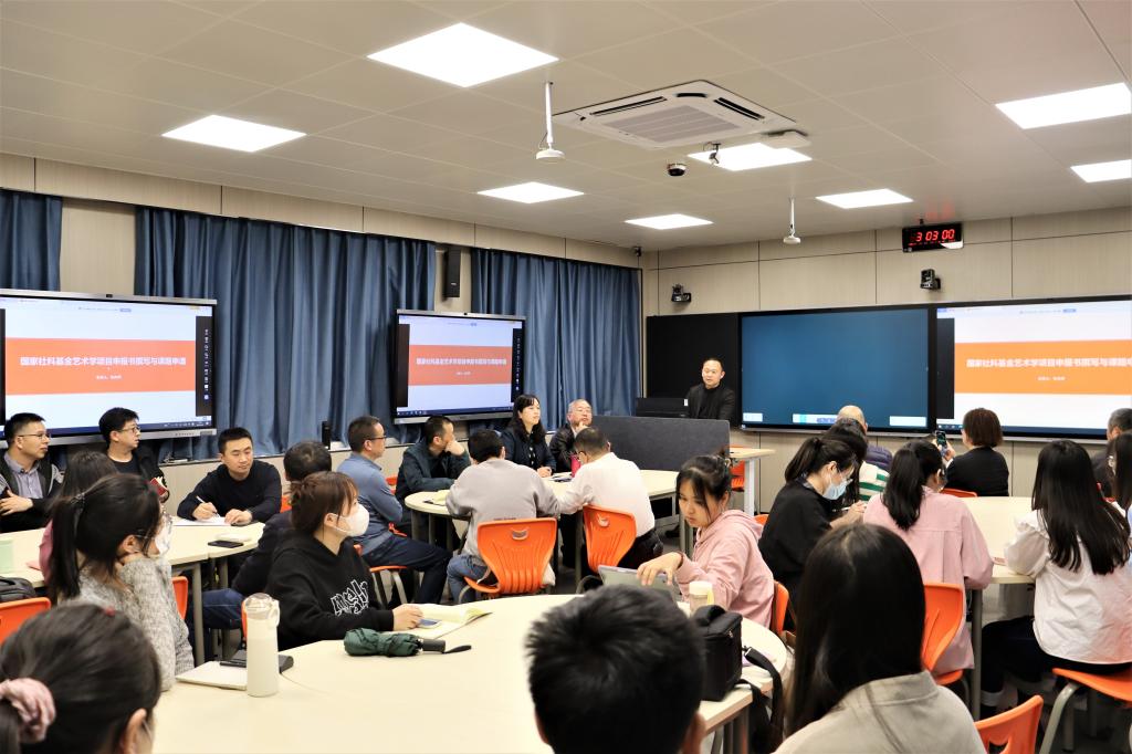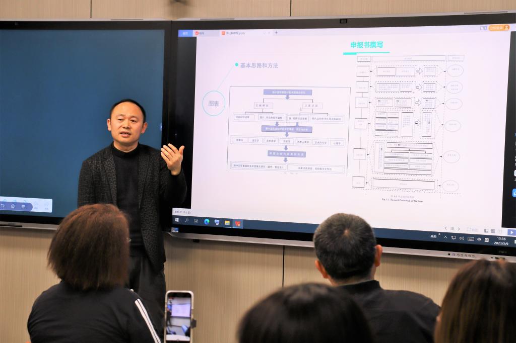 3月9日下午,英国365集团官网“大河薪传•美美与共:名师论坛系列学术讲座”在新艺术楼二楼多媒体教室举行。邀请西安建筑科技大学教授张向辉做了主题为“国家社科基金艺术学项目申报书撰写与课题申请”的学术讲座。出席本次讲座的有英国365集团官网经理席卫权、副经理王圣松、英国365集团官网骨干教师及公司研究生。讲座由英国365集团官网副经理马利霞主持。