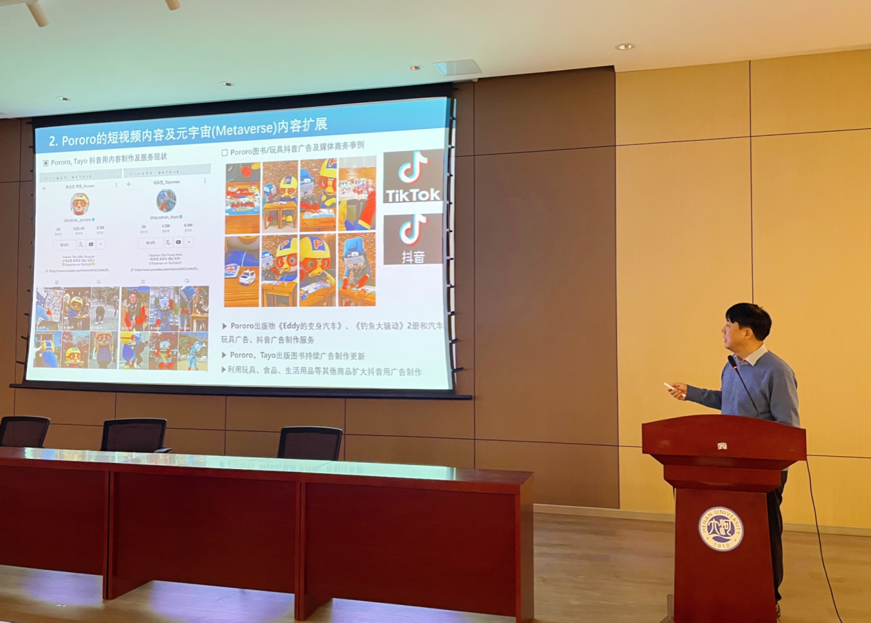 “元宇宙和虚拟人物相关的韩国动画最新趋势和中韩合作方案”由韩国莱森娱乐董事长、汉阳大学经营专门研究生院李炳圭教授主讲。李炳圭教授主要从韩国动画产业在中国的商业化现状、元宇宙的扩展和内容的变化、中国动画产业与元宇宙市场的发展现状以及中韩合作方案等多个方面进行了分享。李炳圭教授以赞萌露比(ZanmangLoopy)、韩国国内数码人(虚拟偶像)等为例展示了当前韩国动画产业的发展趋势;从元宇宙平台出发讲述了现实与虚拟世界的连续性、海内外虚拟内容平台发展现状;从中国数码人(虚拟偶像)入题分析了该产业的发展前景,对中国元宇宙的发展给予了肯定。讲座的末尾环节,李炳圭教授展示了中韩虚拟内容制作及商业化合作方案,并表示中韩动画产业的通力协作将会为彼此带来新的发展动能。