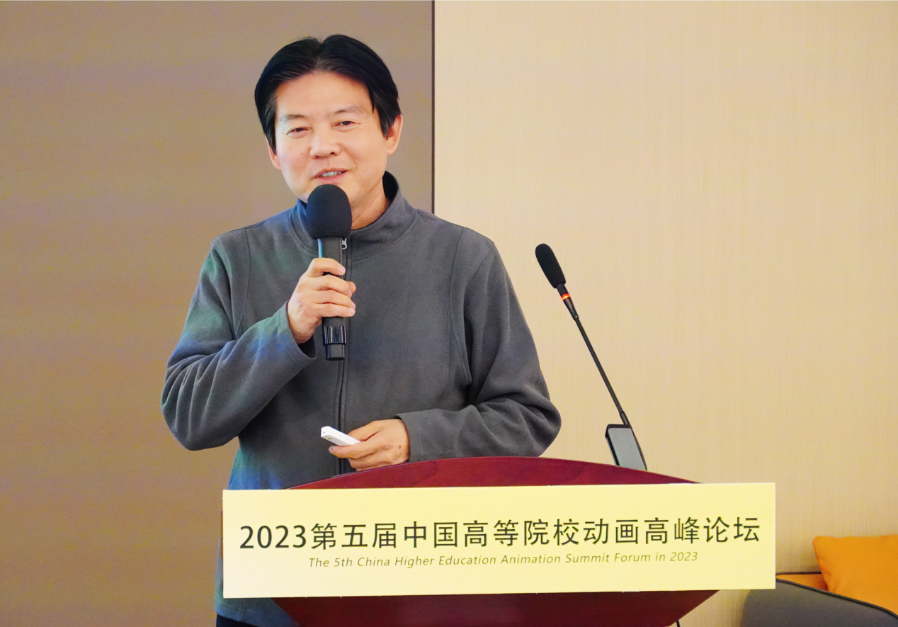 在主题分享环节,严晨教授从媒介、艺术、教育三方面出发,认为人工智能技术代替不了人的创造力,人类正在快速掌握与人工智能的相处方式。耿少波教授以北京电影公司创办的阿达实验班为例,探讨了动画教育与专业发展的诸多议题。